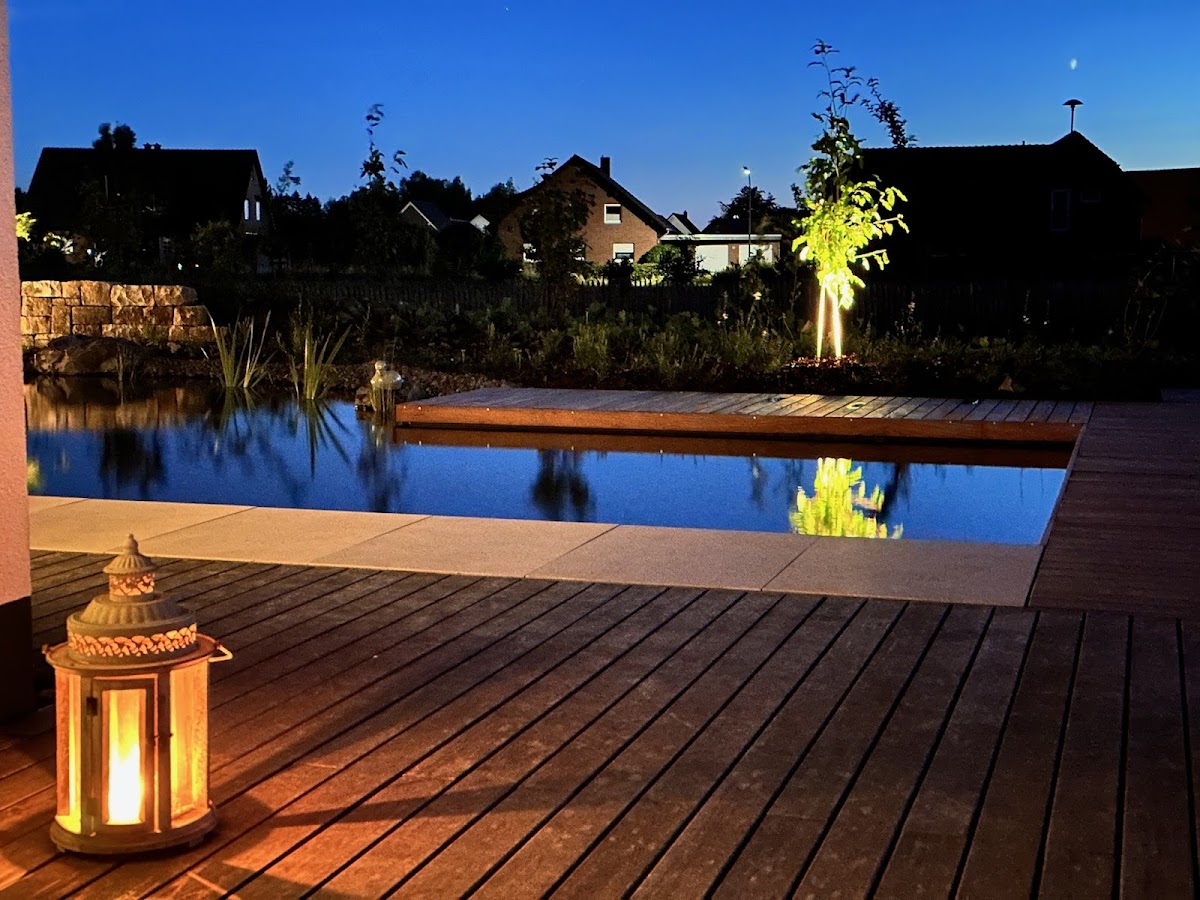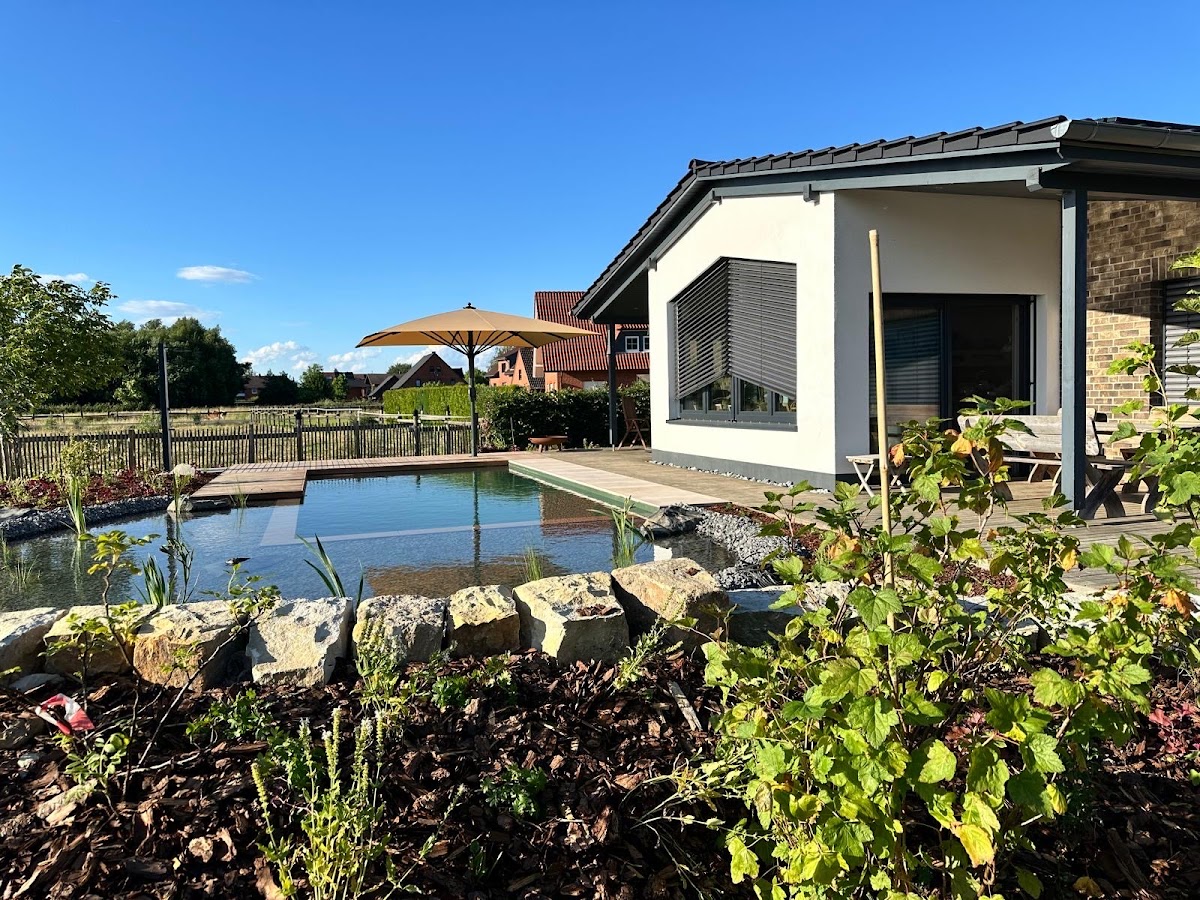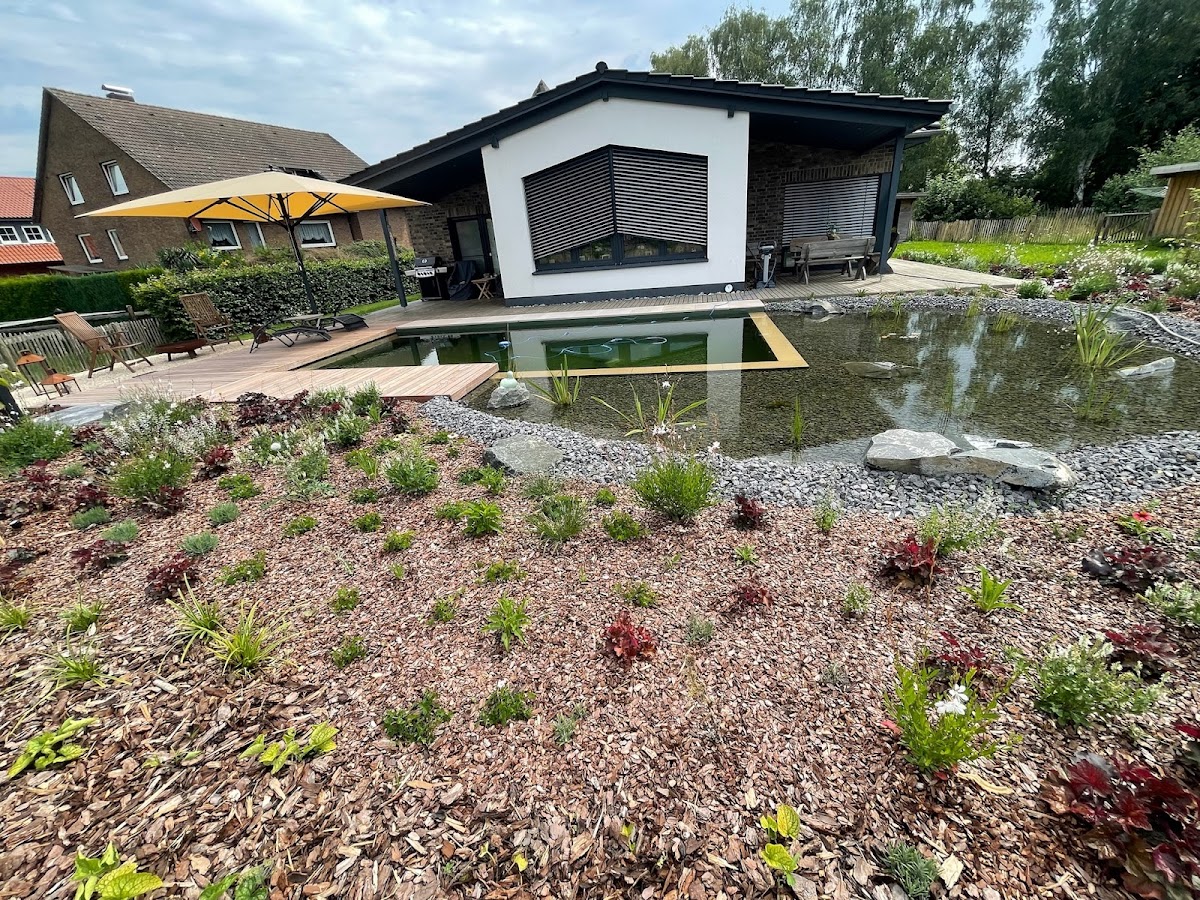 Wir haben in diesem Jahr von Firma Böger einen Naturpool erstellen lassen - und sind restlos begeistert! Nicht nur die fachliche Umsetzung unserer gemeinsam entwickelten Ideen begeistert uns bis heute, sondern der partnerschaftliche, freundliche und absolut professionelle Umgang der Mitarbeiter der Firma Böger war einfach toll! Bei uns waren teilweise vier (4!!!) GaLaBau Meister im Einsatz sowie weitere sehr engagierte Mitarbeiter und Auszubildende. Wir nutzen den Naturpool des Teichmeister-Systems seit Bauende im Juni bislang täglich und sind einfach froh, diese Investition getätigt zu haben. Das schönste aber ist, dass wir nicht einfach ein Loch mit Wasser gefüllt bekommen haben, sondern eine Natur-Oase mit hunderten von Stauden, einer Trockenmauer aus behauenem Sandstein und vieles mehr. Danke an Herrn Hylmar, Herrn Böger, Frau Spindler (Staudenfee) und insbesondere Herrn Christen für dieses tolle Ergebnis! Jederzeit wieder!