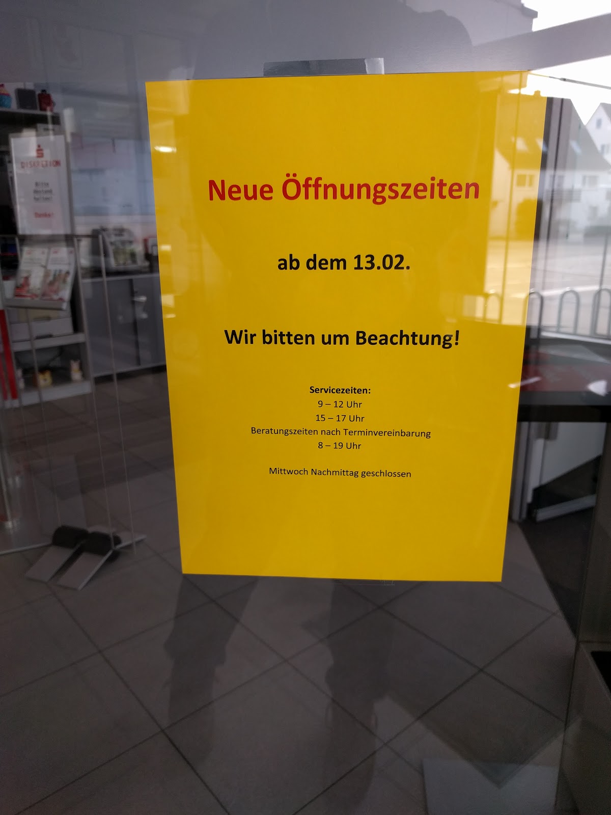 Sehr freundliches und sehr kompetentes Service-Team. Man fühlt sich hier willkommen. Mir wurde sehr kompetent und spontan bei der Einrichtung von Apple-Pay geholfen. Toll, dass die Sparkasse hier vor Ort ansprechbar ist. Macht weiter so!