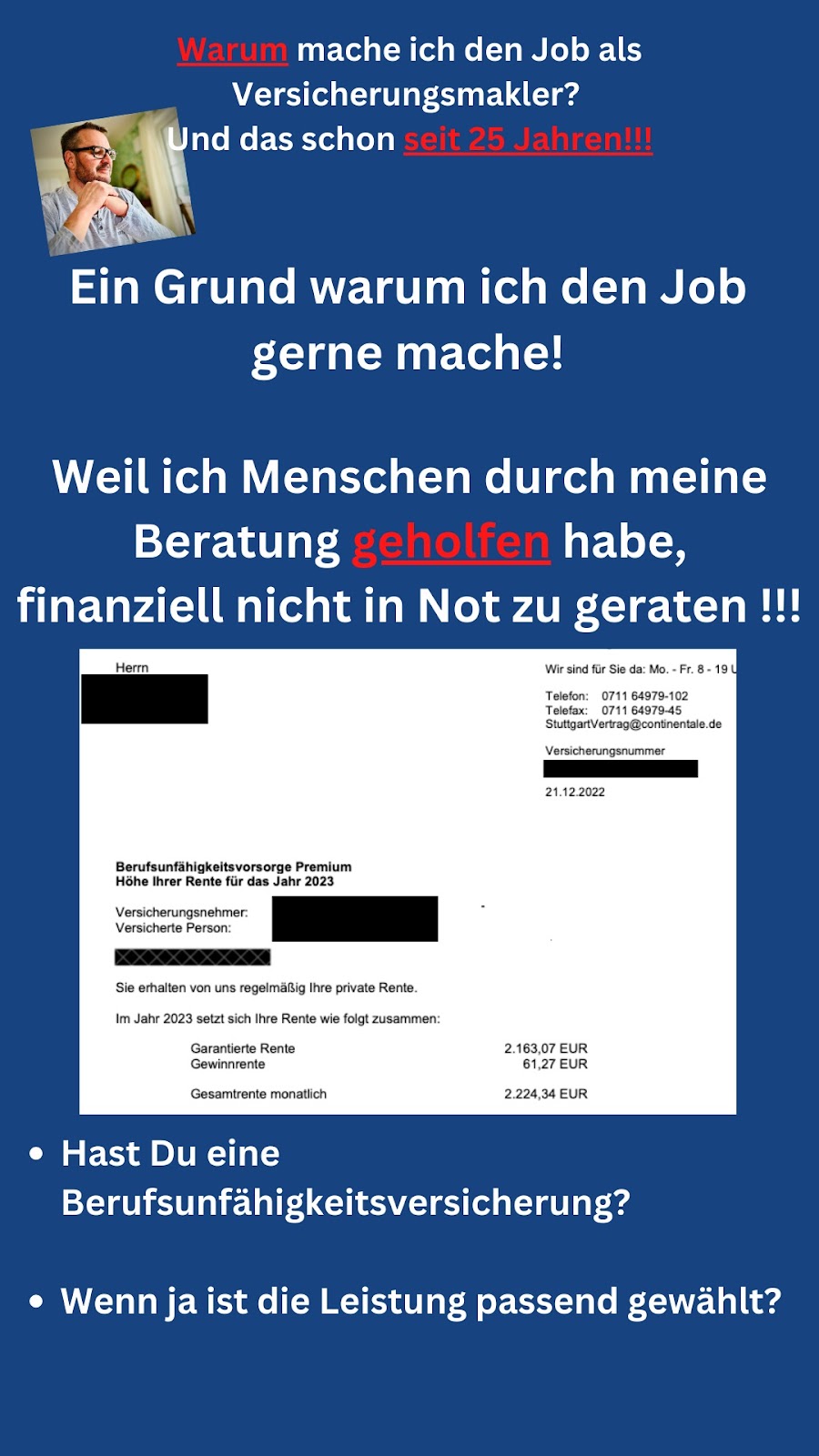Frank berät einen genau zu den Themen, die für einen selber am wichtigsten sind und passt sich super an die verschiedensten Lebenswege an. Seine Beratung ist ganz ohne Druck und man lernt sehr viel Neues und Wissenswertes dazu. Seine Unterstützung ist auf jeden Fall empfehlenswert👍