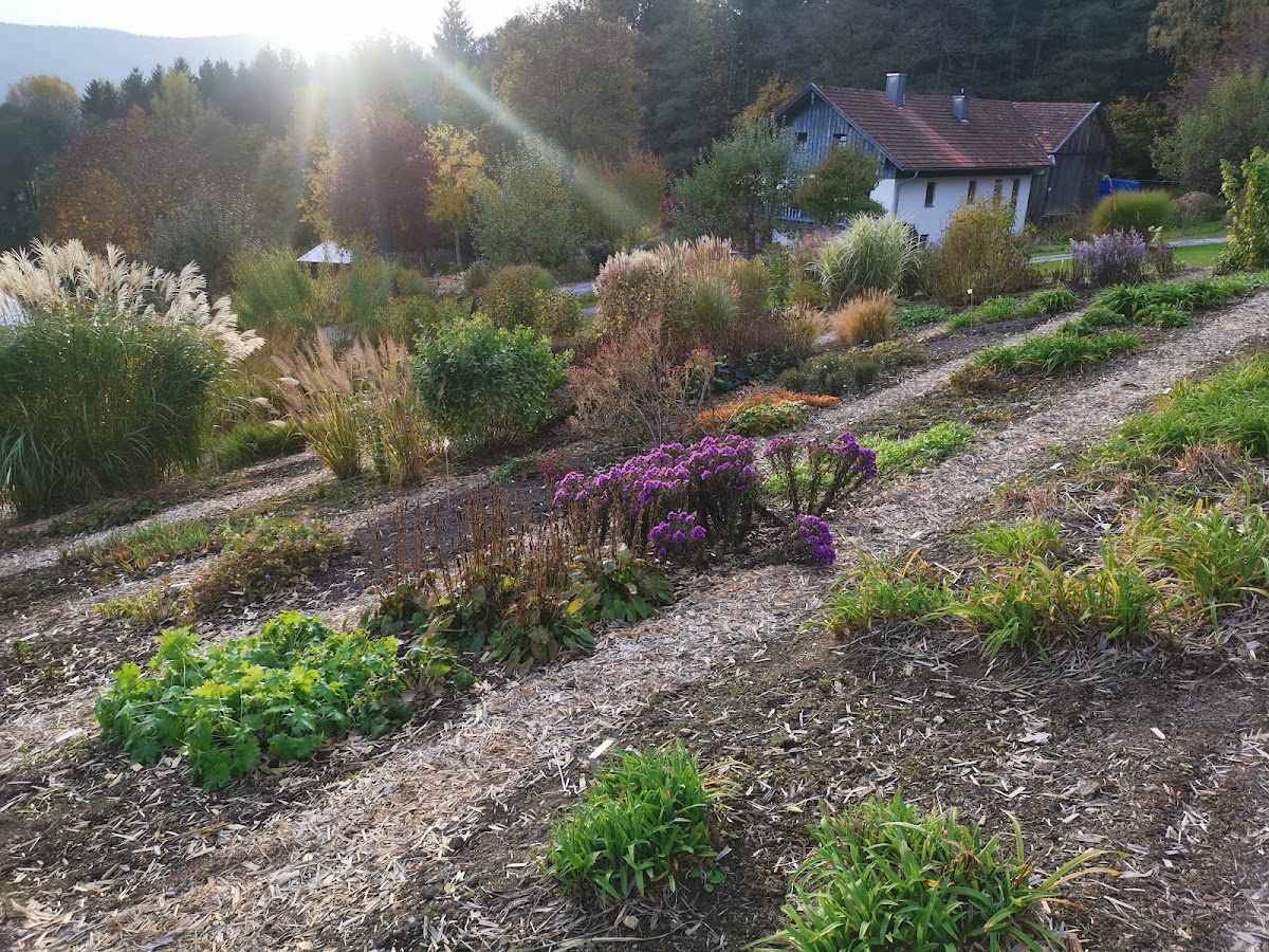 Etwas außerhalb von Arnbruck liegt dieses Staudenparadies. Hier findet man winterharte Kräuter, Blütenstauden, Ziergräser, Wasserpflanzen sowie Farne, alles aus Eigenproduktion. Leider gibt es keinen Versand, aber ein Besuch lohnt sich auf alle Fälle !! - Meine Bekannte hat zwar leider ihre Lieblingsstaude nicht bekommen, aber trotzdem etwas Schönes mit nach Hause nehmen können. Mir hat am besten der Schaugarten gefallen mit seinen vielen verschiedenen Gewächsen.