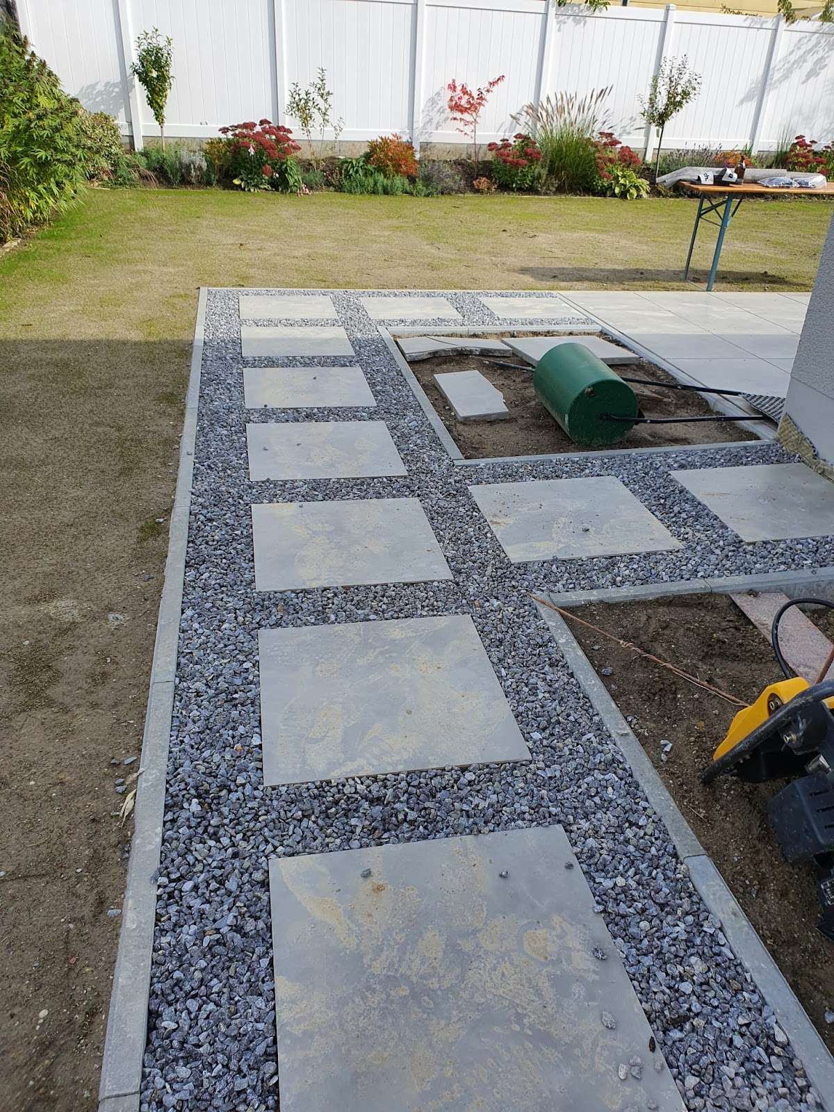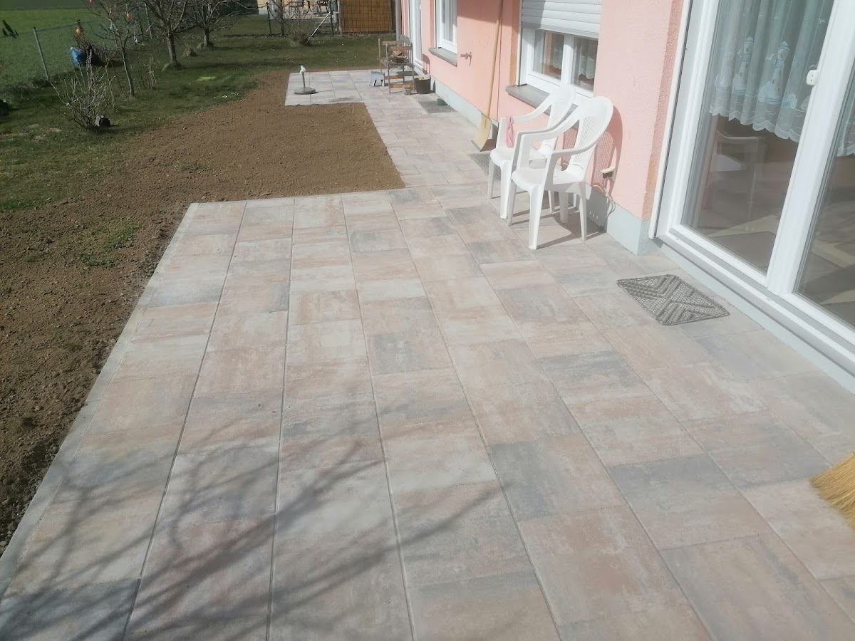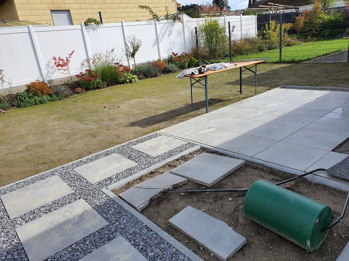 Schon durch sein durchdachtes Konzept hat uns Herr Müller überzeugt! Die Planung mit dem Zierkies (dieser würde mit einem speziellen Flüssigkeit verklebt) den eingefügten Platten sind ein Blickfang! Der Naturstein in weiß grau hat das Bild dann abgerundet👍. Auch die Terrasse die mit Keramikplatten 60x60 gelegt wurden ergänzen unsere Pavillion perfekt. Die WPC Sichtschutzwand bietet einen perfekten Sichtschutz zum Garten. Rundum ein sehr gutes Komplettpaket, dass Herr Müller hier umgesetzt hat. Auch die Preiskomponente hat uns gefallen, so dass wir Herrn Müller auf jeden Fall weiterempfehlen. Vielen herzlichen Dank nochmal.