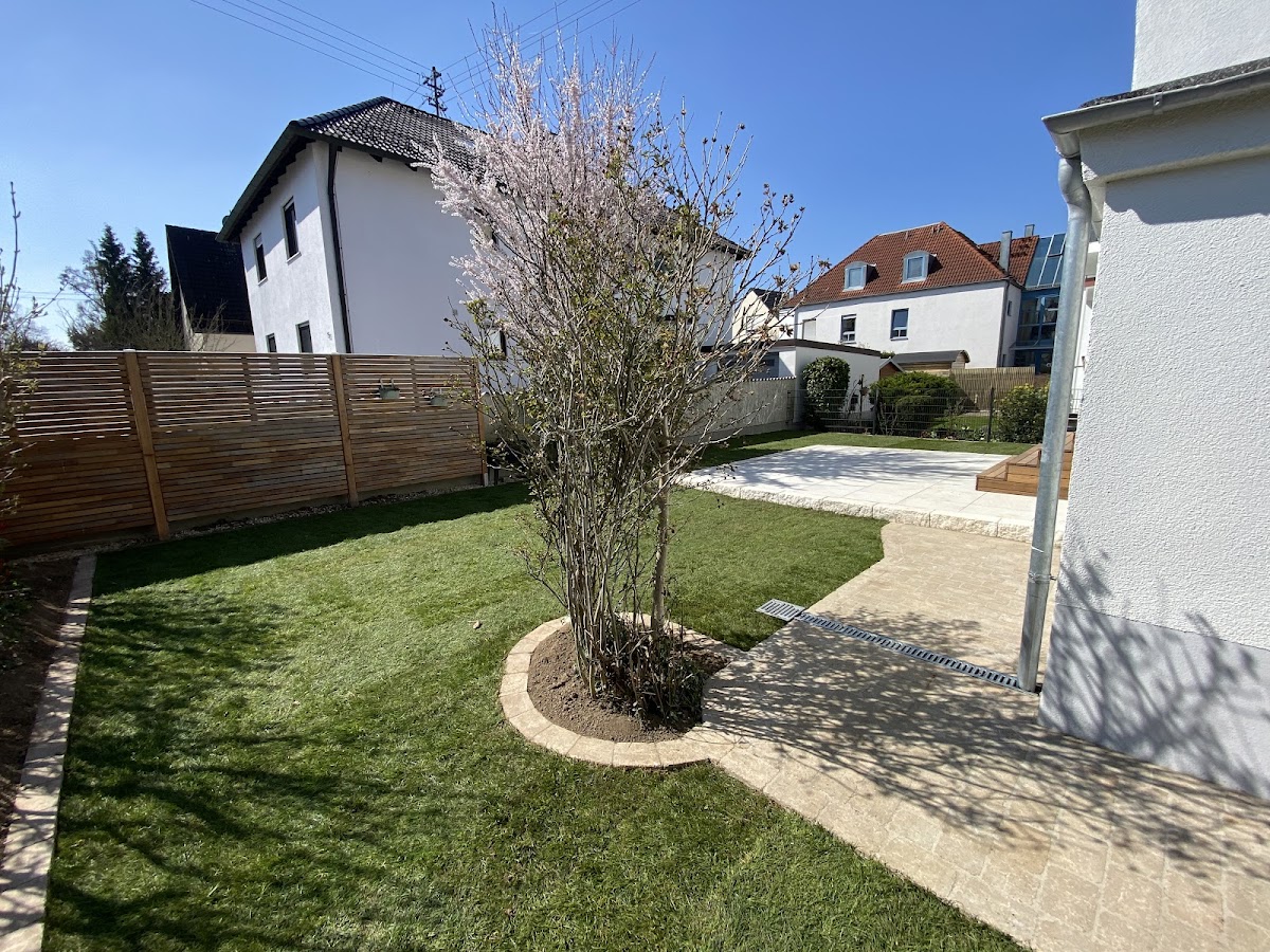 Das Gewerk bestand aus einem Mauerbau (Naturstein) mit Fundament, neuer Terrasse (Naturstein), Verlegung von Rollrasen und Einfassung von Lorbeersträuchern. Herr Schiener und sein Team haben die anspruchsvollen Arbeiten trotz schwieriger Wetterbedingungen pünktlich und einwandfrei erledigt. Neben der Verbindlichkeit in allen gemachten Aussagen sind v.a. die pragmatischen Lösungsvorschläge besonders positiv hervorzuheben. Super Gartenbauer und Handwerker! Jederzeit gerne wieder.