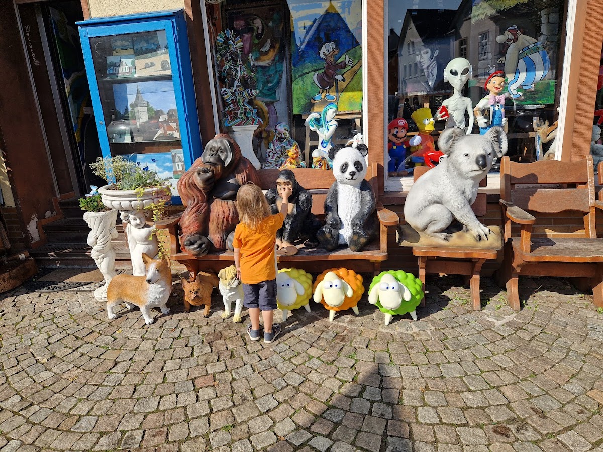 Einfach ein wundervoller Ort. Wir waren schon zwei Mal dort, nachdem wir zufällig bei einem Ausflug nach Bad Camberg über den Laden gestolpert sind. Beide Male sind wir mit stark erleichterten Geldbeuteln wieder gekommen und den Kofferraum vieler wundervoller Figuren und Deko für drinnen und draußen. Wir haben hier die Hälfte unserer Weihnachtsgeschenke gekauft. Man findet Figuren und Skulpturen für alle Geschmäcker: realistische Tiere, Dinosaurier, moderne Kunst, aber auch für Fantasy und Manga fans ist ganz viel dabei...Gargoyles, Repliken aus Herr der Ringe in allen Größen. Einfach ein super schöner Ort 🥰 Allein das Durchschlendern ohne was zu kaufen ist ein toller Programmpunkt. Es erinnert einfach an einen Märchenwald. Überall gibt es was zu sehen. Sehr liebevoll gestaltet!