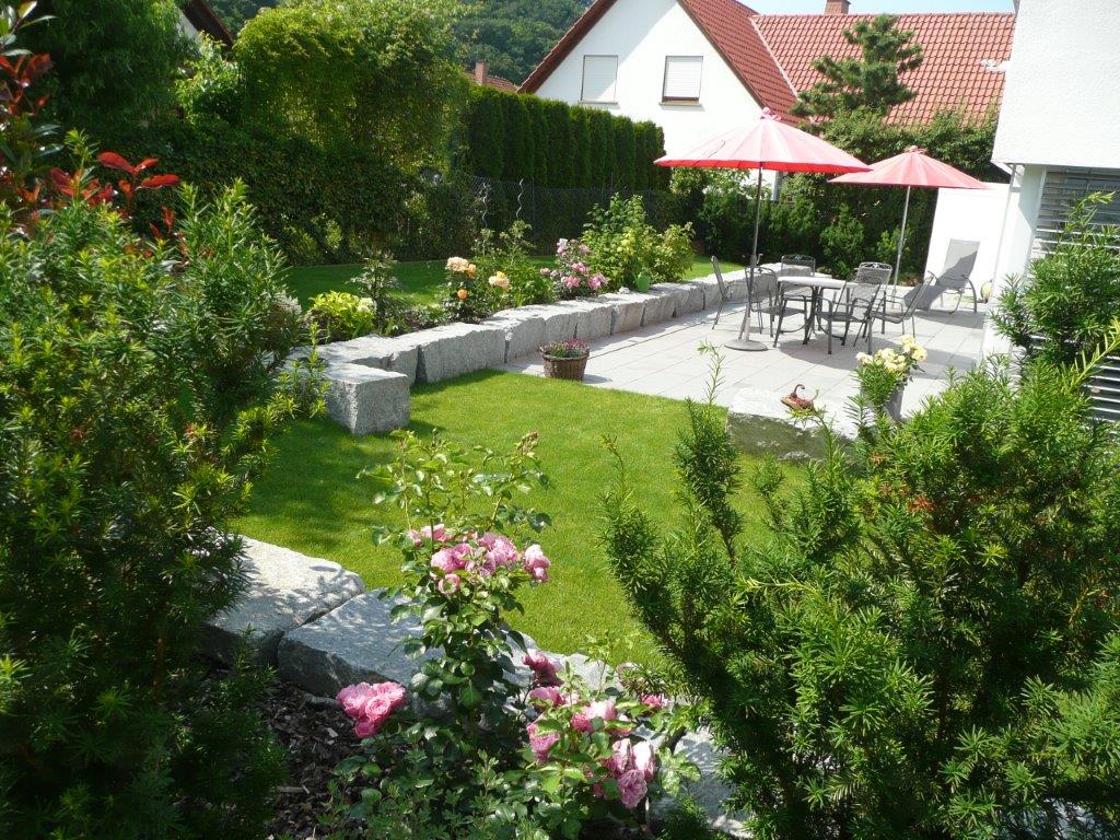 Heute endlich unser lang überfälliges Feedback. Wir haben im Oktober 2017 unseren Garten komplett neu- und umgestaltet. Die Zusammenarbeit mit der Fa. Ruckteschler war vom ersten Telefongespräch bis heute ausgesprochen angenehm und konstruktiv. Wir waren anfangs sehr unsicher, was auf unserem relativ kleinen Grundstück möglich ist, welche Ideen sich sinnvoll umsetzten lassen. In den vorbereitenden Gesprächen zeigte sich aber schnell, dass wir die richtige Firma gefunden hatten. Wir wurden sehr gut beraten , unsere eigenen Vorstellungen und Wünsche und die Empfehlungen der Fachfirma lassen uns heute in einem wunderschönen neuen Garten sitzen. Das Angebot war schlüssig und sehr detailliert, Frau Barbara Herberich begleitete uns bei der Auswahl der Materialien, zeigte uns Fotos von anderen Projekten oder zeigte uns diese vor Ort, beriet uns bei der Auswahl der Pflanzen und steht auch weiterhin mit Rat und Tat zur Verfügung. Die vorgesehene Bauzeit von 10-14 Tagen wurde trotz eines unvorhersehbaren Mehraufwandes bei Abriss der Altterasse und Schlechtwetter eingehalten. Besonders gut und sinnvoll empfanden wir, dass das im Kopf und auf dem Papier geplante Projekt nicht in Stein gemeißelt war. Jeden Morgen vor Arbeitsbeginn wurde nochmals mit Georg Ruckteschler gesprochen und es konnten noch sinnvolle Änderungen vorgenommen werden. Wir werden besonders jetzt im Frühjahr sehr oft von Nachbarn und Spaziergängern auf unseren neuen schönen Garten angesprochen und erhalten sehr viel positive Resonanz. Ein großes Dankeschön an Georg Ruckteschler, Barbara Herberich und das ganze Team, wir konnten euch bereits wiederholt weiterempfehlen. Familie Diwok , Freinsheim