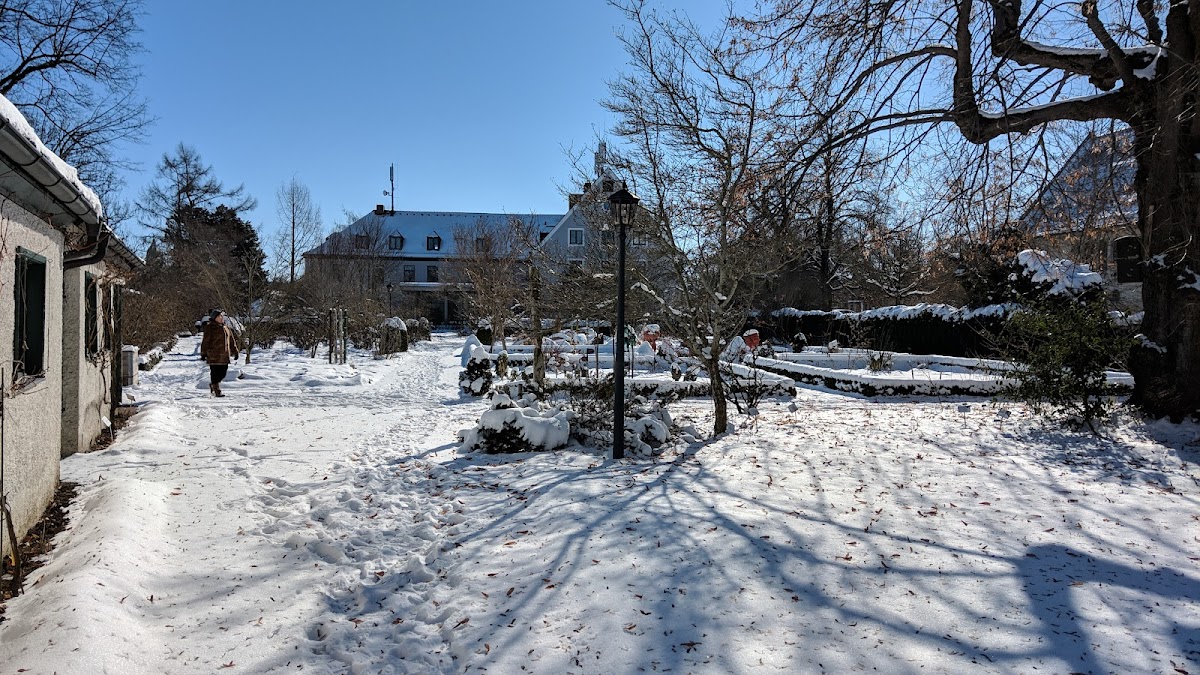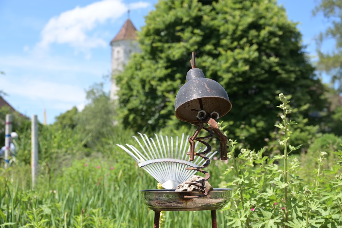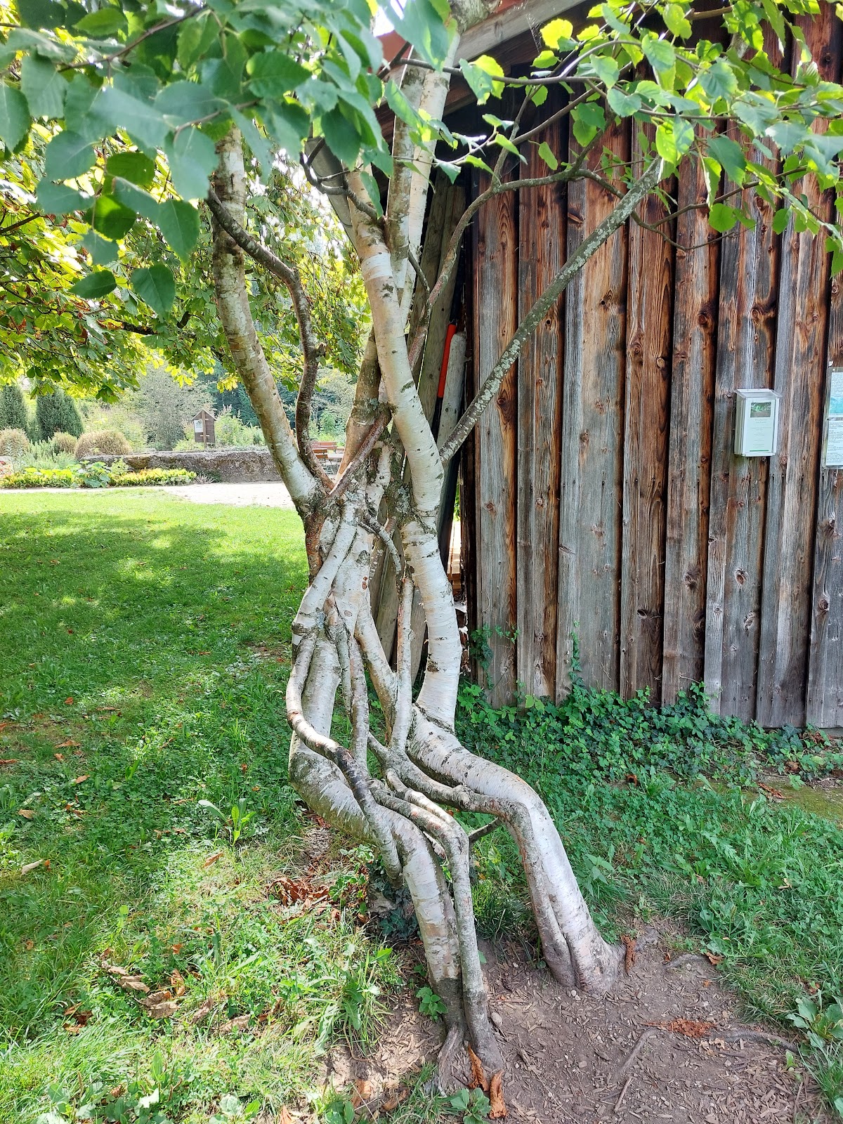 Eine sehenswerte kleine Gartenschau mit dem Garten auf der anderen Straßenseite. Dort stehen über 20 jährige Gehölze die zu Stuhl oder Laube geflochten wurden.