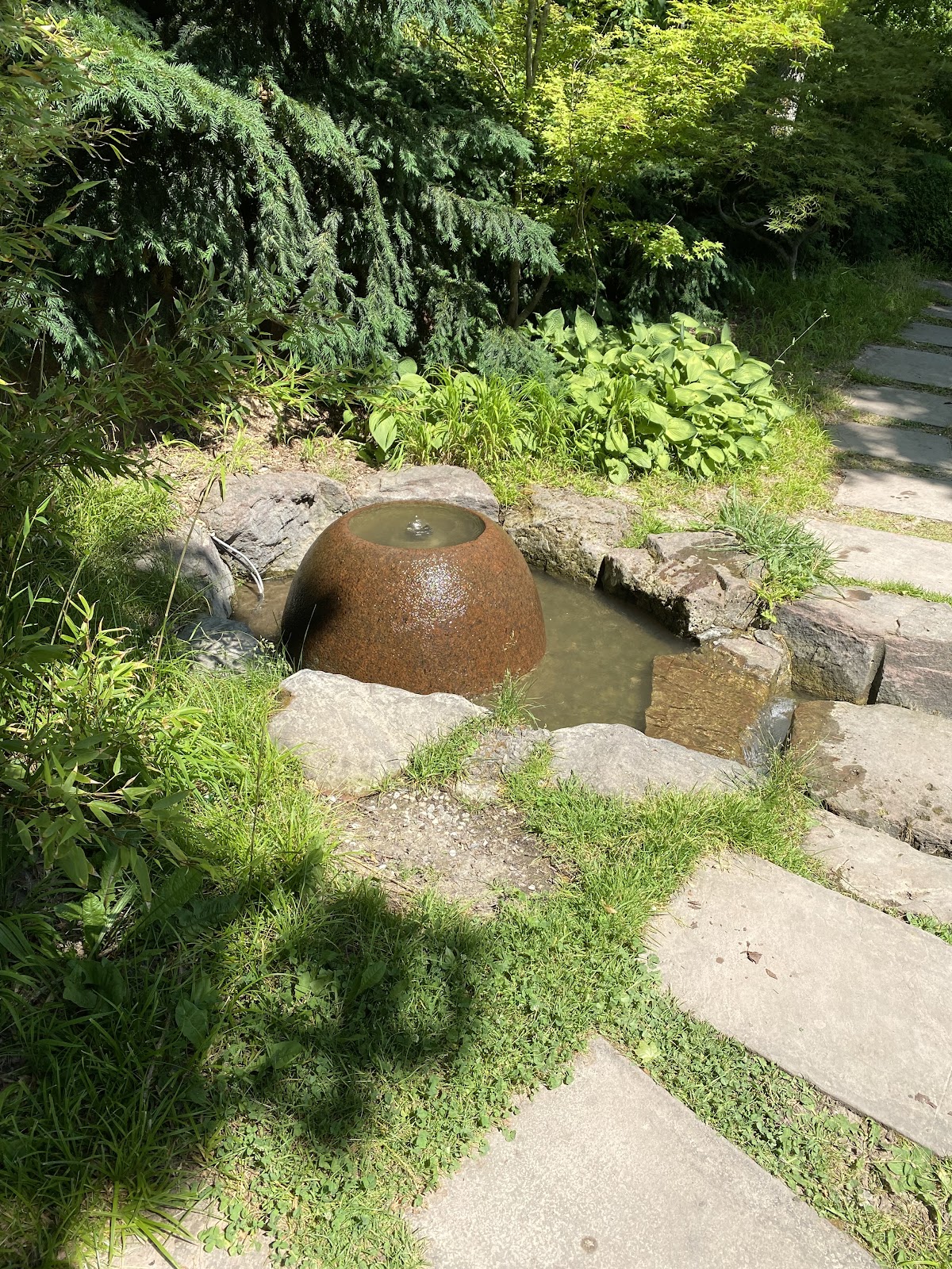 Ein schön angelegter, kleiner Garten mit einem Bachlauf. Vermutlich in jeder Jahreszeit nett anzusehen.