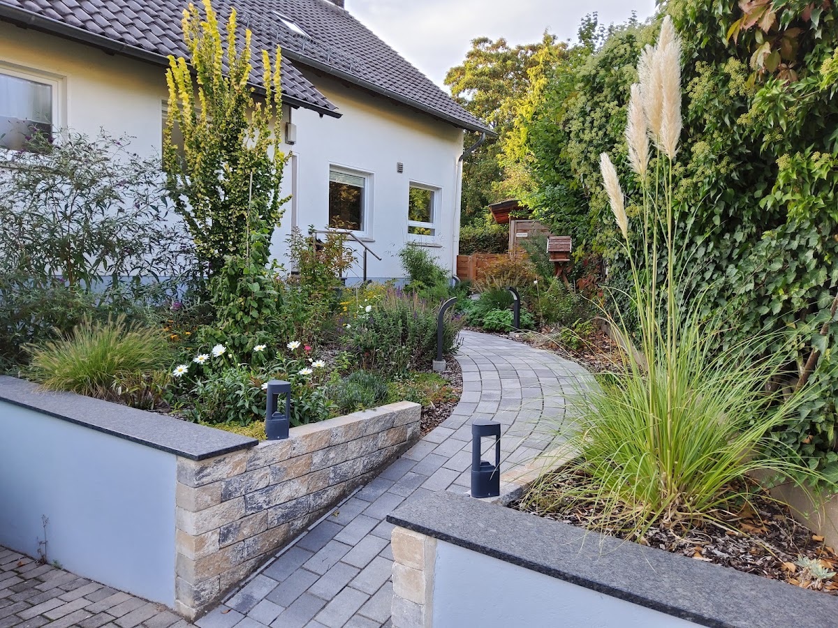 Die Gestaltung erfolgte fast "künstlerisch". Soll heißen, dass die Gestaltung auf das bestehende Haus und die bestehende Gartengestaltung abgestimmt wurde und diese sinnvoll ergänzt hat. Ich finde es schrecklich, wenn in einem Garten im Laufe der Jahre drei verschiede Pflaster/Platten verlegt wurden und nichts zueinander passt. Bei Bloß ist das eben nicht der Fall. Die Arbeiten wurden handwerklich top ausgeführt. Ich gehe davon aus, dass sie mich überdauern. Daher immer wieder gerne. 👍