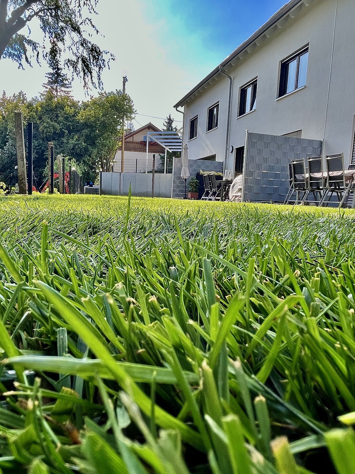 Sehr schöner, dichter und starker Rollrasen. Viel Erde unter dem Rasen - somit werden beim Schnitt keine Wurzeln durchtrennt und der Rasen wächst besser an. Sehr zu empfehlen!