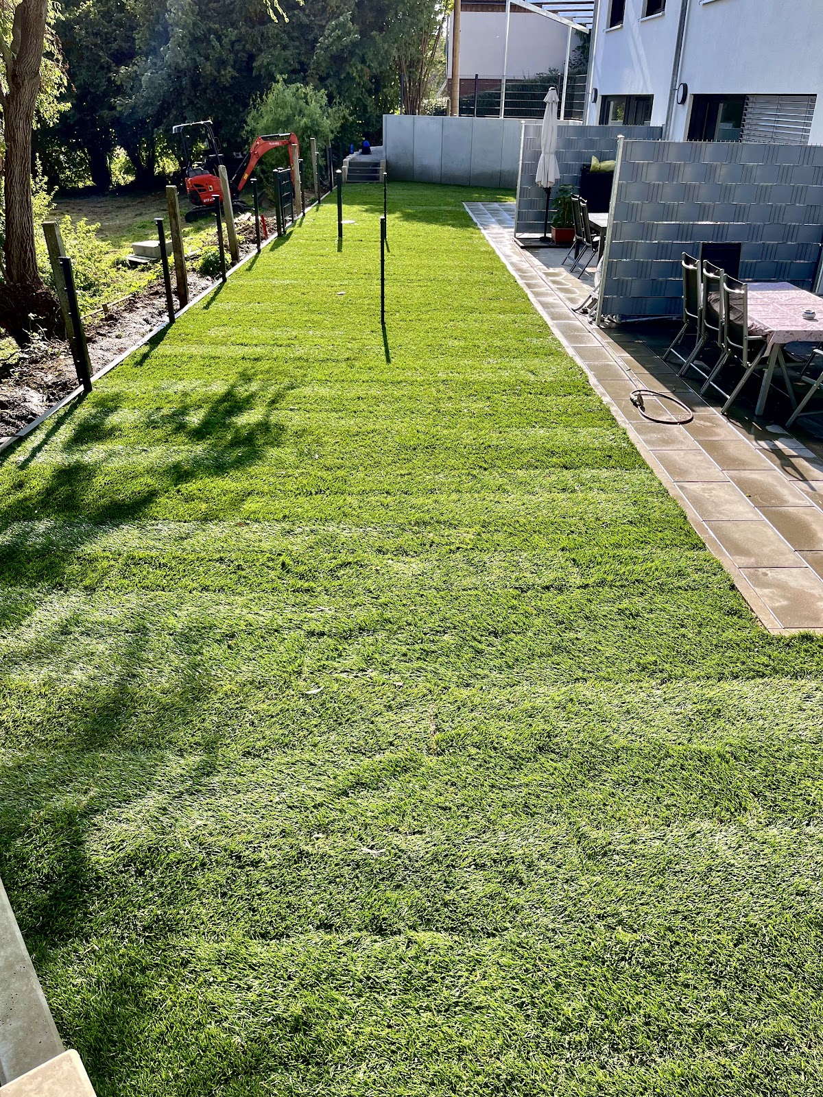 Am Vortag bis 15 Uhr bestellt, kann der Rollrasen am nächsten Morgen ab 7 Uhr abgeholt werden. Die Qualität des Rasens ist sehr gut, sauber und gleichmäßig dick geschnitten, unkrautfrei und sattgrün, so soll es sein. Wir haben uns bei unserem Projekt für den angebotenen Premium Hitze und Trockenheits - Gebrauchsrasen entschieden.
