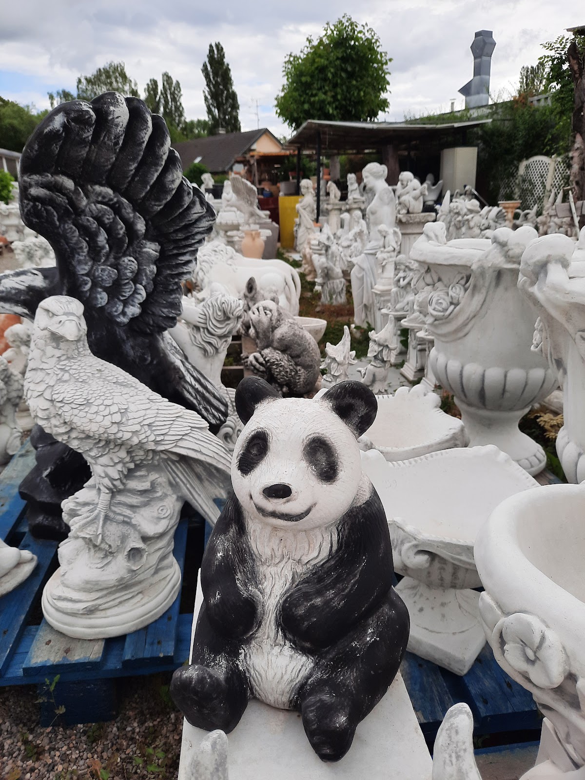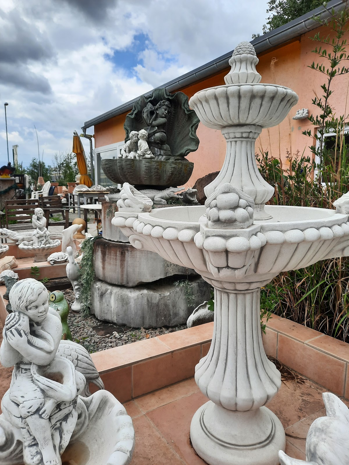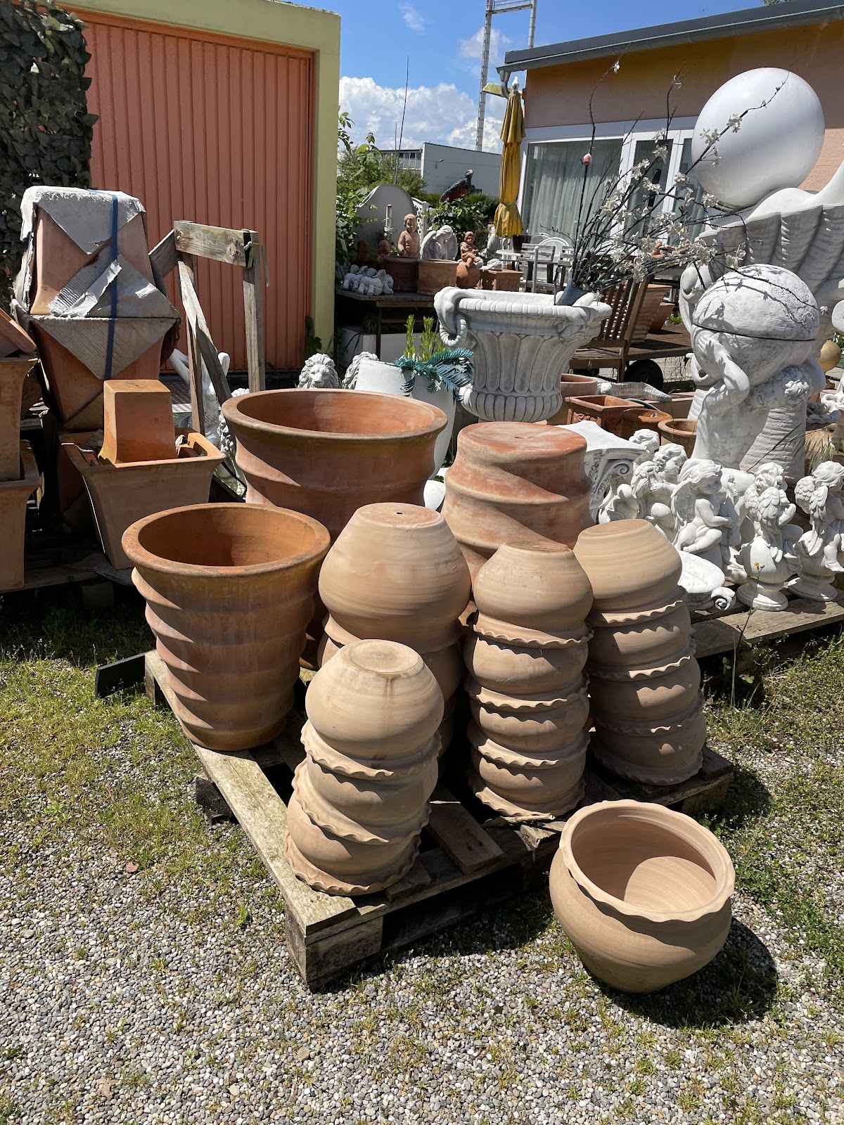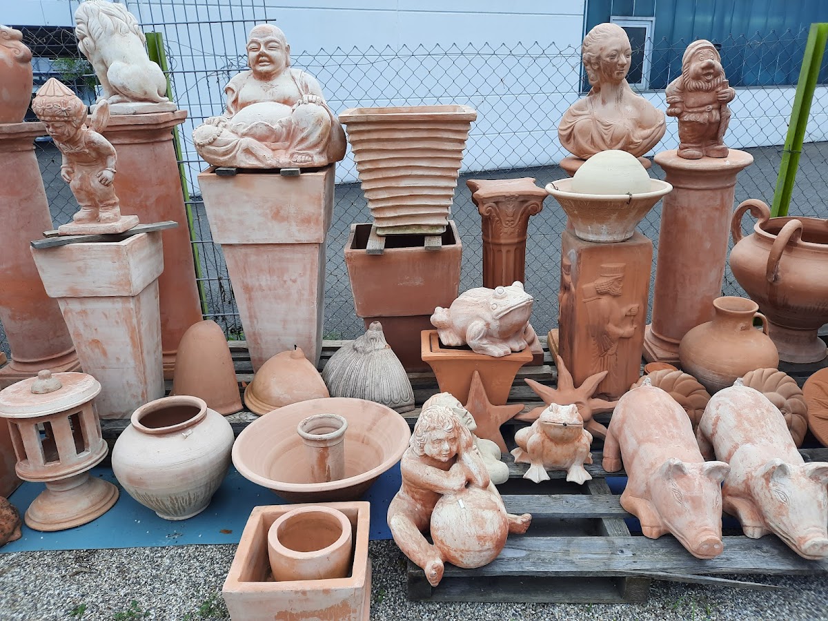 War heute im Steinfiguren-park , hab mich draußen umgeschaut , große Auswahl an Figuren, Statuen, Gefäße, Übertöpfe , Vasen , Krüge , und vieles vieles mehr. Ich habe einen ca 50cm x 50 cm großen Terracotta Übertopf gebraucht , habe auch einen gefunden , ursprünglich hat der 200€ gekostet , es gab heute auf Terracotta Artikel 50% Rabatt , also hab ich den Übertopf für 100€ bekommen . Ich weiß nicht ob es die 50% Rabatt immer gibt .