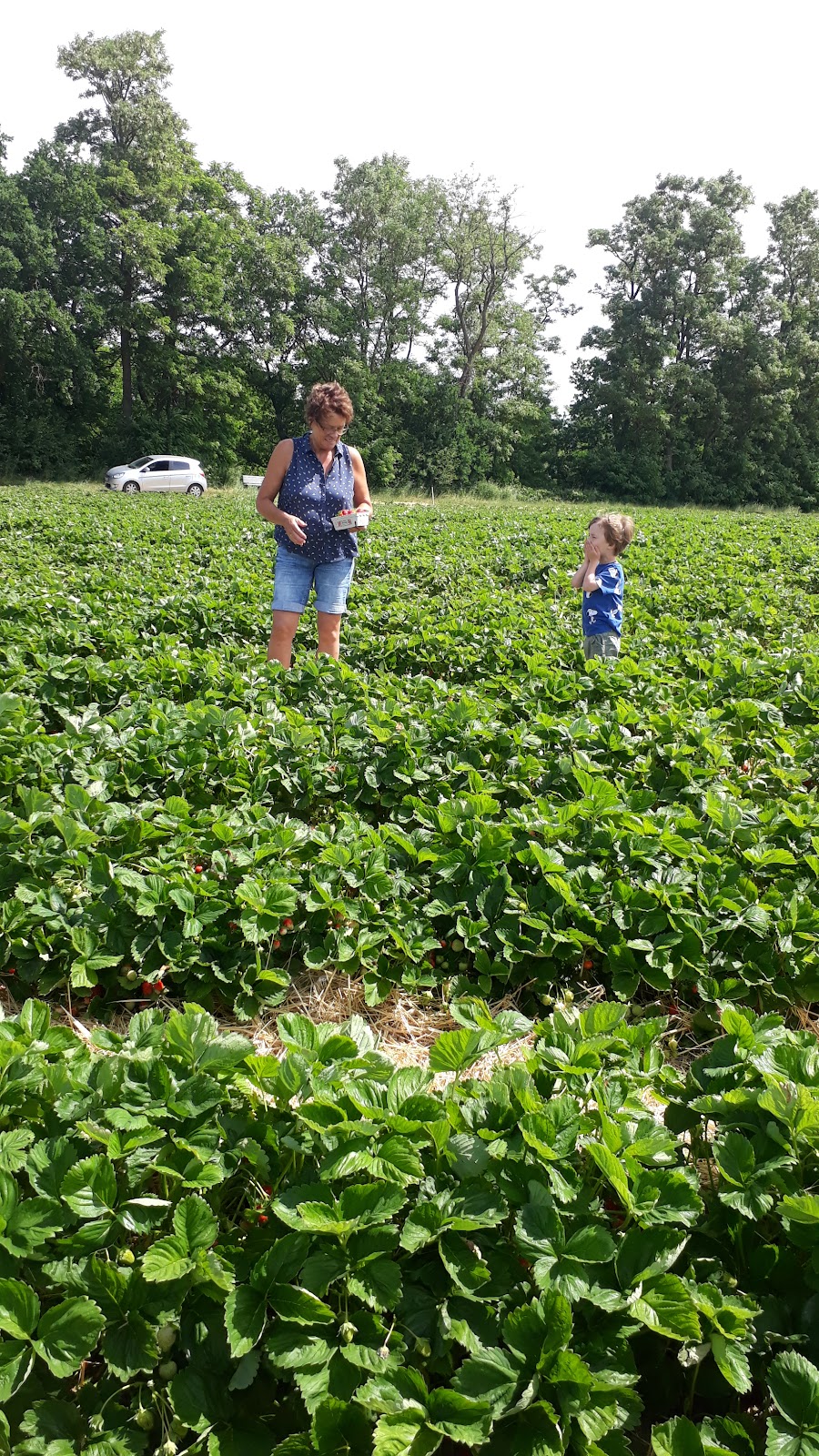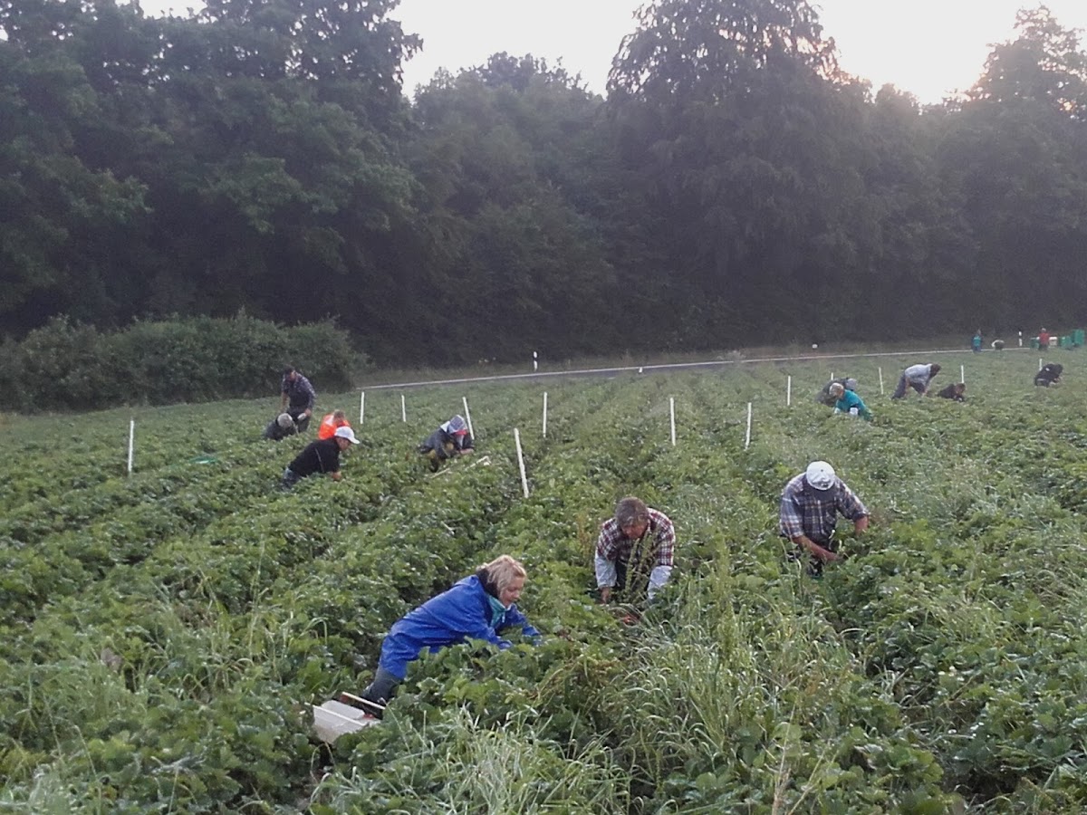 Folgt den gelben Erdbeerschildern. Leckere Erdbeeren zum selbst pflücken. Körbchen/ Eimer sollte man selbst mitbringen.