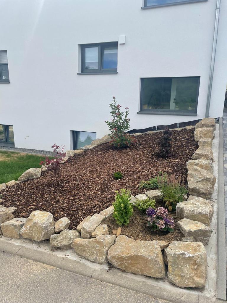 Und wieder ein sehr guter Eintrag bei den Brüdern Vukovic. Vielen Dank Euch für Eure richtig gute Arbeit bei uns! Ihr habt Euch unsere Wünsche und Fragen angehört, habt uns beraten und nun sind wir mehr als zufrieden mit dem Ergebnis. Trockensteinmauern, L-Steine und Rabatten genau nach Plan als Vorbereitung für die Holzterrasse wurden gesetzt, Dränagerohre verlegt, Erde im Garten modelliert und die Garage und Einfahrt gepflastert. Die Arbeiten gingen sehr, sehr zügig voran und waren nach 8 Arbeitstagen erledigt.