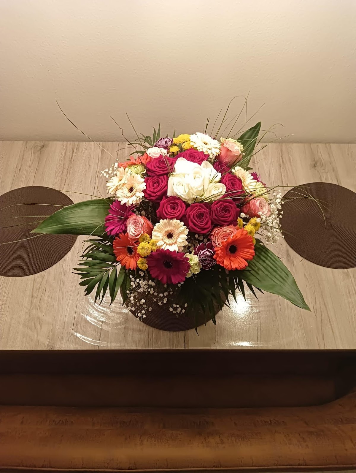 Ich liebe die Blumenauswahl. Wunderschöne Rosen gebunden. Und die Schalen werden liebe voll bepflanzt.