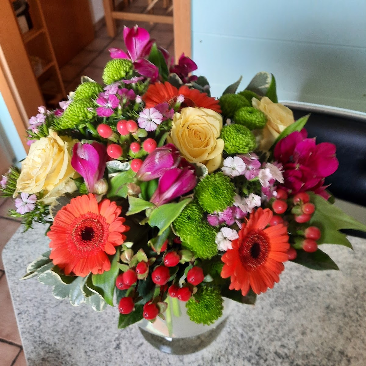 Wir haben vor einigen Wochen einen kleinen Blumenstrauß in der Gärtnerei Drippe gekauft. Er hat über zwei Wochen auf dem Friedhof gestanden und sah immer noch wie frisch hingestellt aus. Das war eine tolle Qualität!!! Auch die Canna mit den dunkelroten Blättern sieht nicht nur besonders aus, sie hat mittlerweile den vierten Blütenstängel. Ich bin total begeistert, nicht nur von den herrlichen und frischen Schnittblumen und den Pflanzen sondern auch von den netten und hilfsbereiten Menschen, die in diesem Betrieb arbeiten!