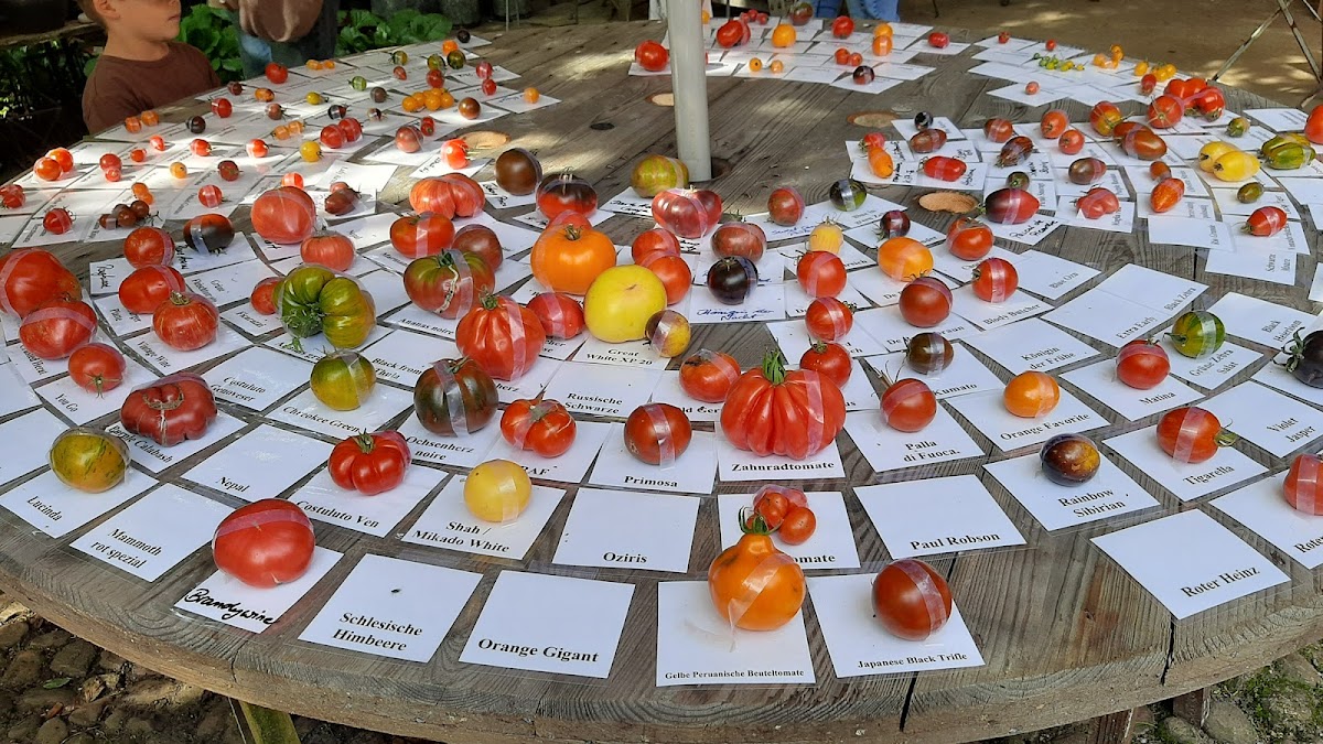 Tomatenfest 2022 , nette Veranstaltung , urig , etwas wild das Ambiente . Kuchen super . Tomatenbratwurst auch . Nicht alltäglich . Schade das viele Pflanzen vertrocknet waren . Aber trotzdem hat es den wilden Charme