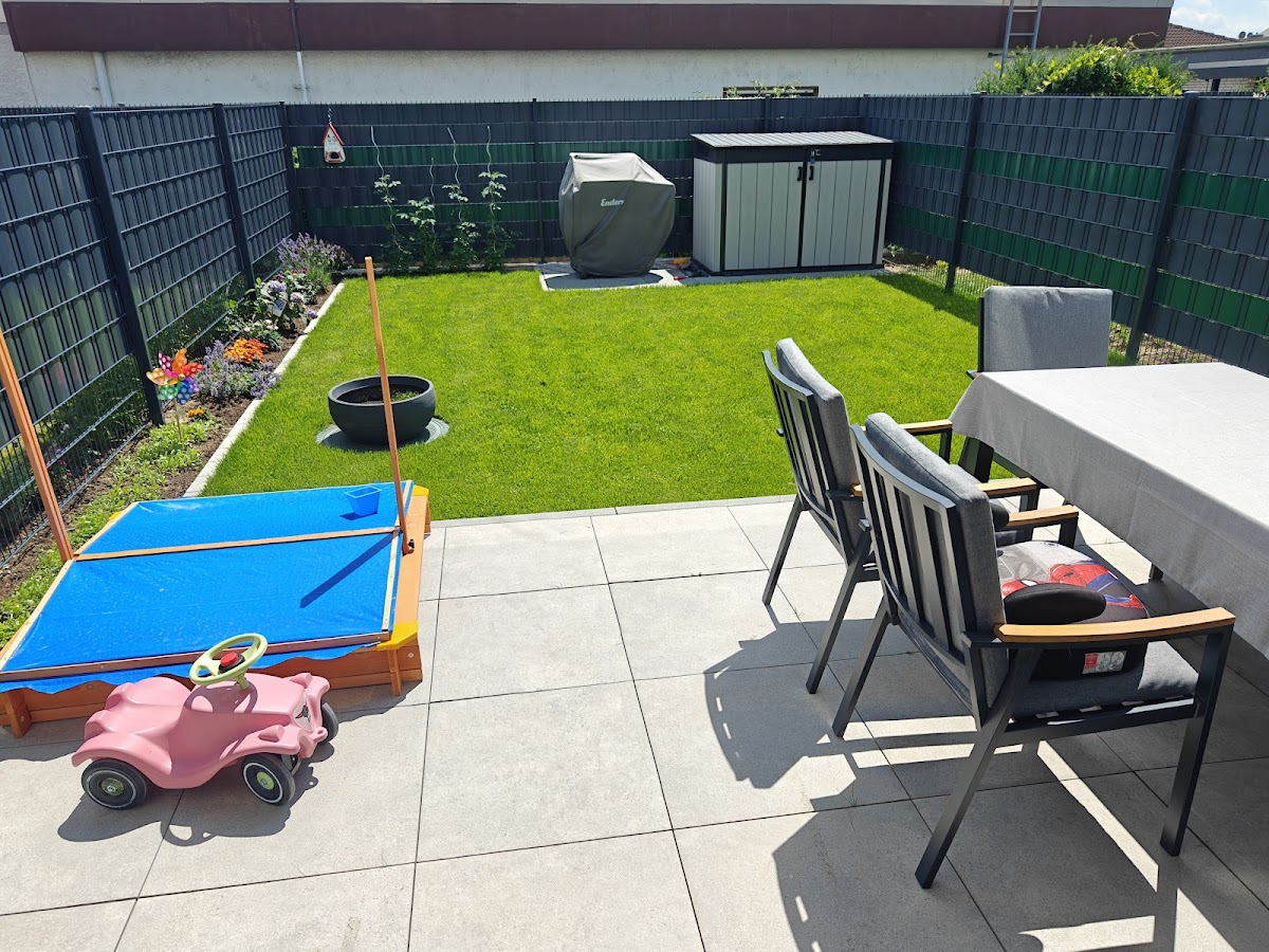 Wir hatten Herrn Helmlinger beauftragt unseren Garten schön zu machen, ein Beet anzulegen und einen Bereich zu fließen, damit dort unser Grill und ein kleiner Geräteschuppen platziert werden konnte. Nach kurzer Rücksprache bestellten wir die empfohlenen Mengen beim Bauhändler, Rollrasen, Container und co. Innerhalb von zwei Tagen war Herr Helmlinger mit seinem Team fertig und das Ergebnis kann sich sehen lassen. Ein paar Fotos von vorher, zwischendrin und nachher habe ich angefügt. Ich kann ihn bedenkenlos weiterempfehlen und bedanke mich für die gute Arbeit, für die ich selbst zu unfähig gewesen wäre :-)