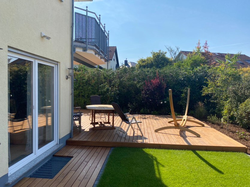 Ein eingespieltes Team mit außergewöhnlichem Sinn für eine perfekte Ausführung. Wir haben unsere Holzterrasse in zwei Schritten austauschen lassen. Bereits bei der ersten, eher kleineren Holzterrasse, die wir als Grill-Standort nutzen, war sehr schnell klar, dieses noch junge, aber sehr pflichtbewusste Team für weitere Aufgaben einzuplanen. Heute ist es ja schwierig verlässliche Handwerker zu finden, die auch noch Spaß an ihrer Arbeit haben. Man merkt einfach, dass dieses Unternehmen durch Fleiß und harte Arbeit etwas erreichen möchten. Wir können nur sagen, dass wir es auf keinen Fall bereuen, ein noch so junges Unternehmen beauftragt zu haben. Ganz im Gegenteil, es hatte schon fast etwas erfrischendes dem Team bei der Arbeit zuzusehen und - fast noch wichtiger - das vollendete Ergebnis bestaunen zu können. 5 Sterne plus Bonus, jederzeit wieder!