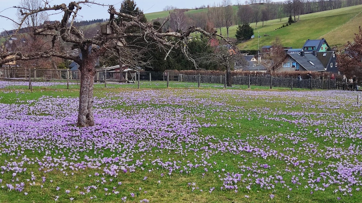 Im März / April gut geeignet für einen Tagesausflug zur Krokusblüte. Super organisiert, mit Tagesparkplatz / Toiletten verfügbar. Zur Parkgebühr gabs einen Flyer, eine Postkarte plus Sticker. Grillstände und Kaffee / Eisverkauf als ich am Wochenende hier war. Schöner Rundwanderweg (ca. 3 km) entlang der Krokuswiesen und am Alpakahof vorbei. Empfehlenswert ist festes Schuhwerk.