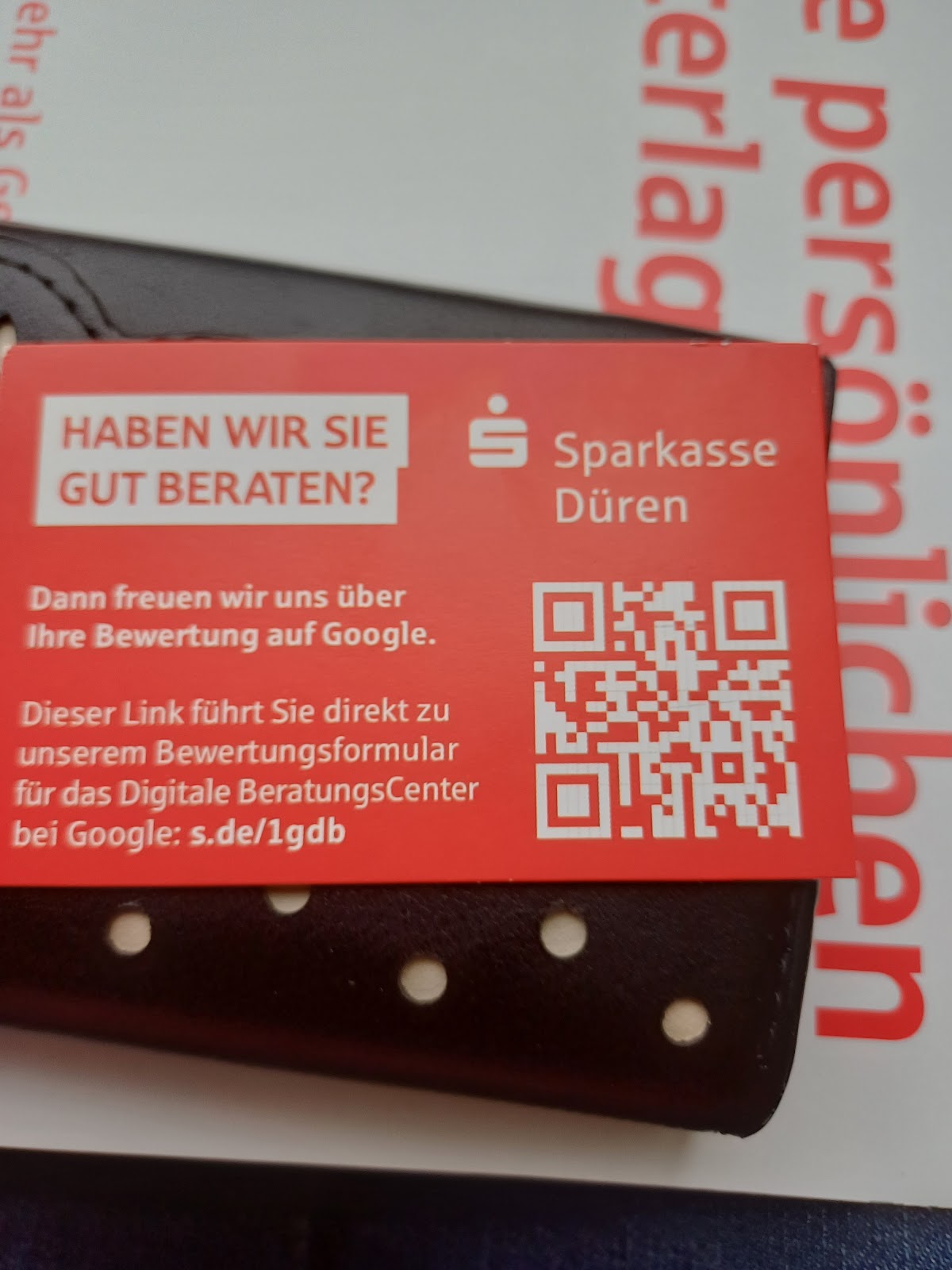 Heute Morgen hatte ich einen Termin bei der Sparkasse Düren! Die Beratung führte Herr Kocsan sehr freundlich und sachlich. Es kam Herr Sauerland dazu, denn ich hatte Probleme beim Online Banking. Beide Herren waren kompetent und souverän. Die Probleme wurden gelöst. Vielen Dank für Ihre Arbeit! Mit freundlichen Grüßen Amin Lamarti