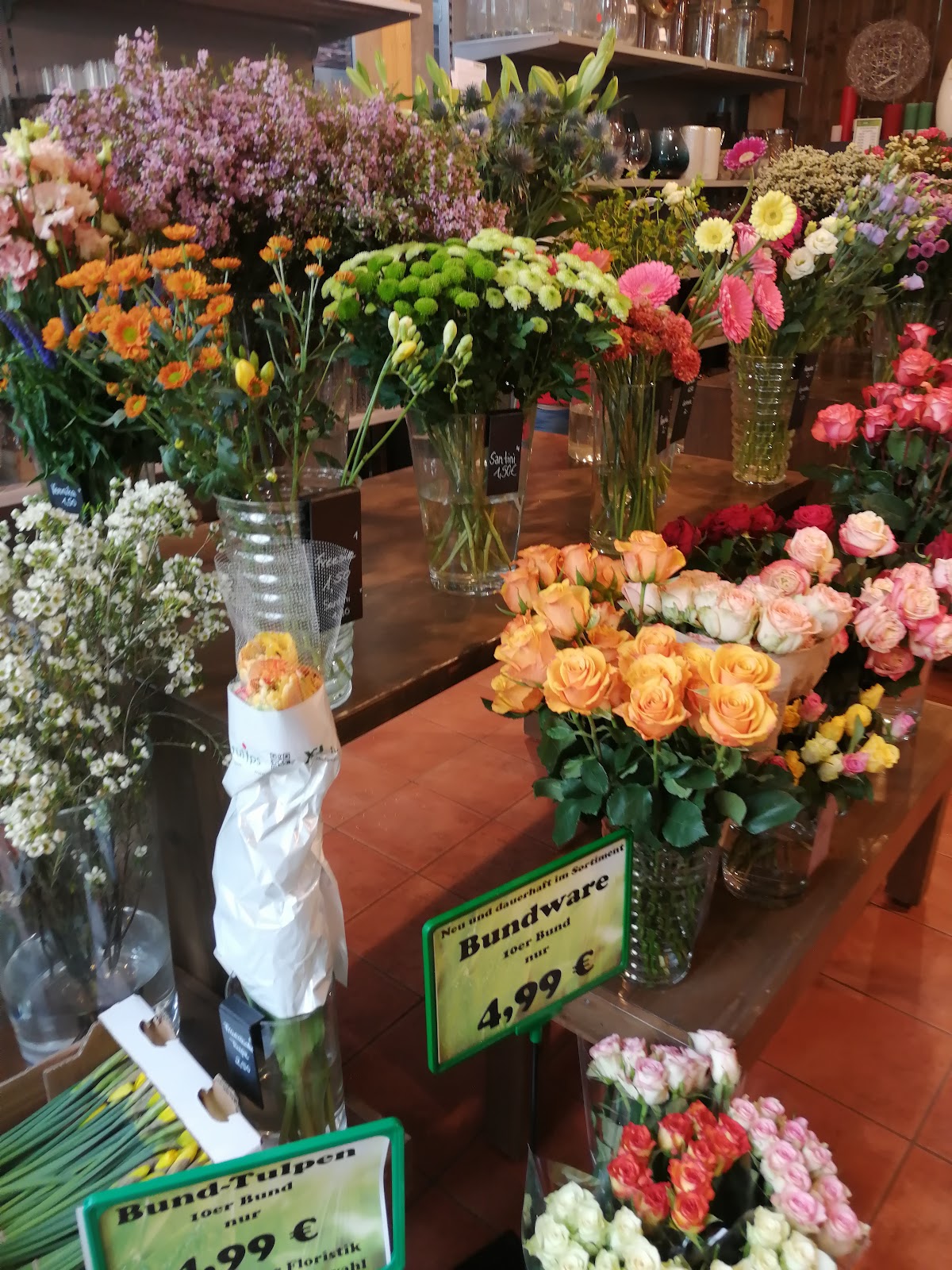 Ich kaufe seit Jahren hier gerne ein. Manchmal gehe ich auch einfach so durch den Laden und freue mich an den schönen Blumen. Heute wieder ein wunderschönes Adventsgesteckt abgeholt, dass nach meinen Wünschen gemacht wurde. Alle Mitarbeiter sind immer ausnahmslos freundlich und hilfsbereit. Schöne Auswahl an Blumen der Saison und faire Preise!