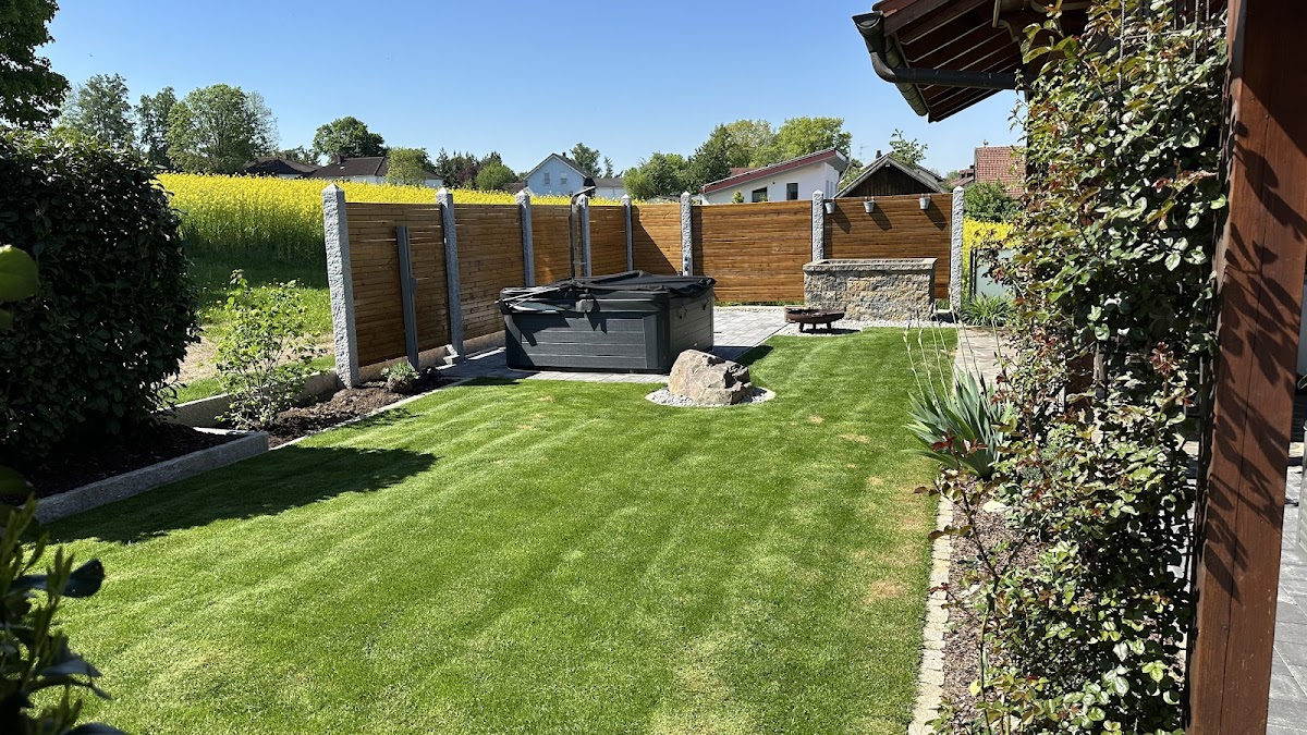 Wir haben von Herrn Salloum unseren Garten neu anlegen lassen. Nach einer ausführlichen Besichtigung vor Ort, hatte Herr Salloum sofort tolle Ideen parat und ging selbstverständlich auch auf unsere Wünsche und Vorstellungen ein. Immer mit Blick auf unser Budget entstand so gemeinsam der Plan. Folgendes wurde gemacht: -Abtrag und Entsorgung der alten Rasenfläche -Niveau-Ausgleich der neuen Rasenfläche -umlaufende Beet-Einfassung mit Granitsteinen -ca 100m Mähkante aus Granit Palisaden( wollte so wenige Fugen wie möglich) -Kinderspielturm Einfassung mit Palisaden -Lieferung und Einbau von neuem Mutterboden -Lieferung und Verlegung von Premium Rollrasen und noch diverse Kleinigkeiten... Wir waren von Anfang bis Ende sehr sehr zufrieden mit der Leistung und zum Schluss auch mit dem Preis. Wenn zwischendurch Änderungen von unserer Seite kamen war dies nie ein Problem und Herr Salloum reagierte stets freundlich und respektvoll. Herr Salloum ist ein sehr hilfsbereiter, ehrlicher und fleißiger Mann! (und immer erreichbar!) Wir würden uns immer wieder für ihn entscheiden!!