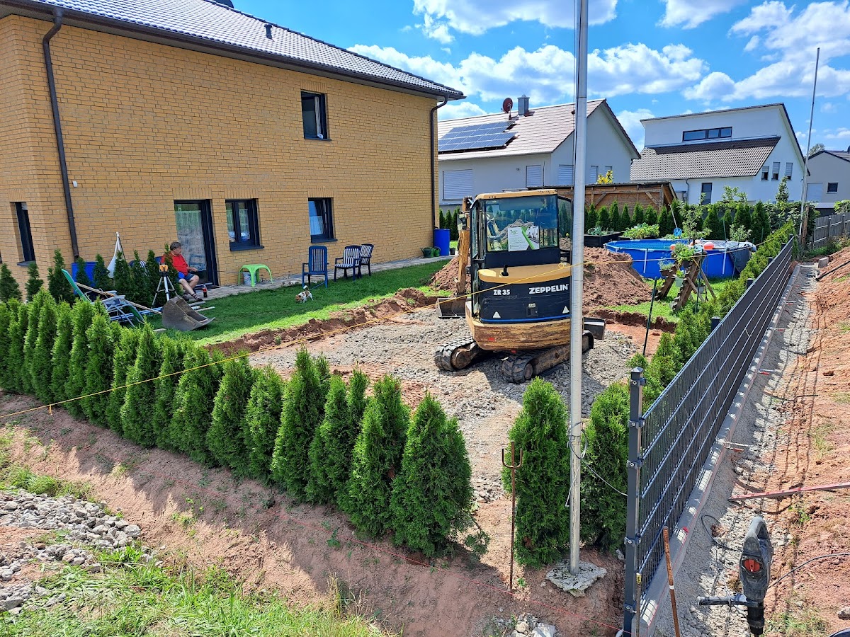 Wir haben über myHammer ein Angebot erhalten. Die Kontaktaufnahme war unverzüglich, das Gespräch sehr freundlich am Telefon und am nächsten Tag haben wir gleich einen Termin für eine erste Beratung gemacht. Alles lief sehr unkompliziert. Innerhalb weniger Tage haben wir ein Angebot erhalten für unsere Außenanlagen. 1000 qm Grundstück im Neubaugebiet. Wir haben A & E für Pflasterarbeiten der Garageneinfahrt , rund ums Haus sowie Terrassenanlagen und Umzäunung beauftragt. Es waren auch einige Baggerarbeiten und Kleinigkeiten zu erledigen. Alles lief absprachegemäß, sehr schnell und sehr saubere Arbeit. Die Baustelle war immer aufgeräumt und sauber, alle waren freundlich und zuvorkommend. Wie haben sehr gute Beratung bekommen, auch bezüglich Material und Verarbeitung. Wir sind sehr zufrieden und glücklich und können A&E auf jeden Fall weiterempfehlen.