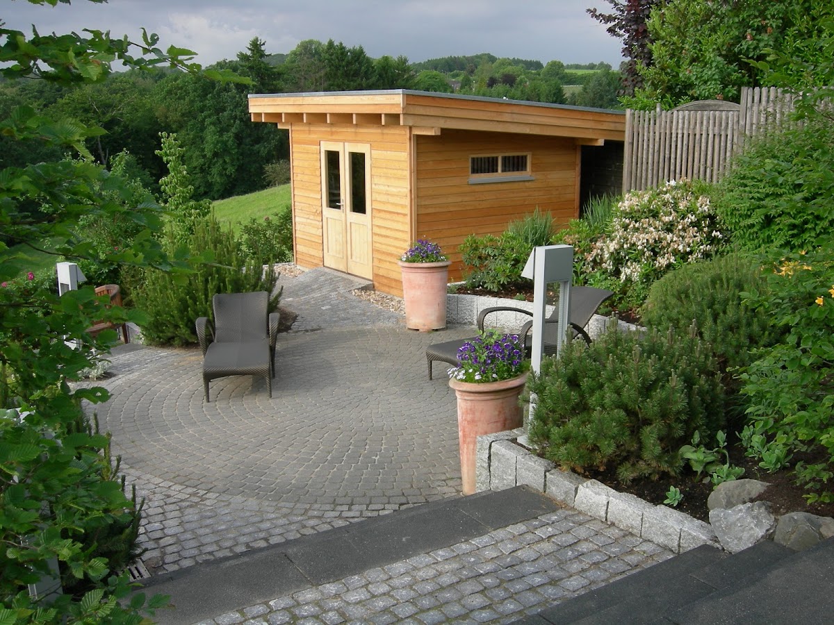 Schön gepflegter Gartenlandschaftsbau. Und im Winter ist dort ein Weihnachtsbaumverkauft.