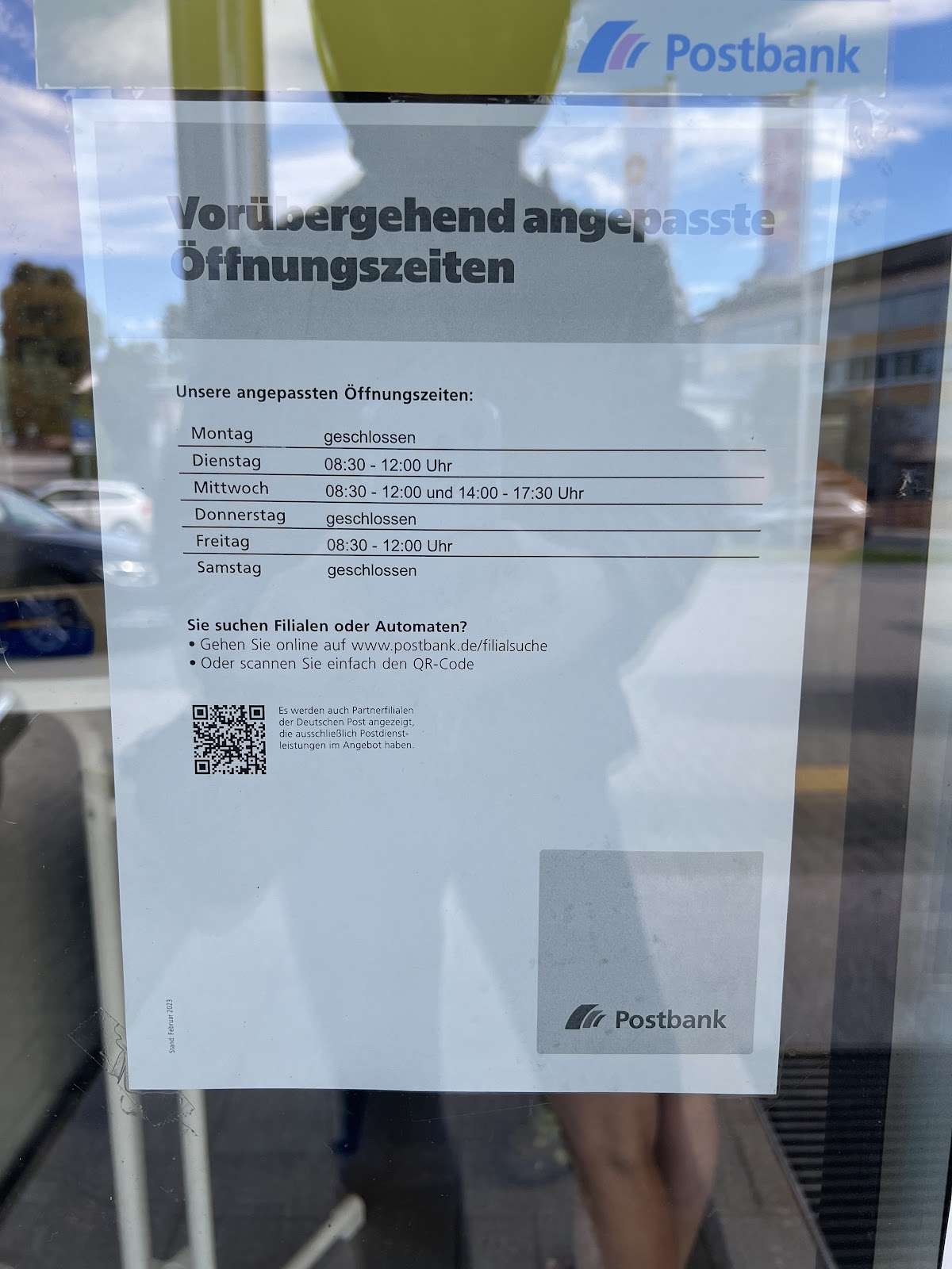 Neue vorübergehende Öffnungszeiten. Ein Grund dafür wurde nicht angegeben. Was das soll? Porto wird erhöht permanent, und der Service zurückgefahren.