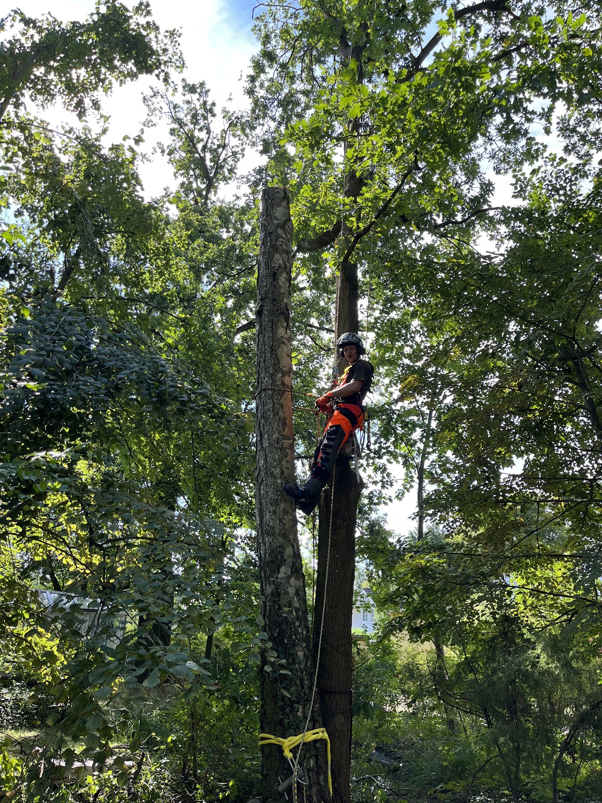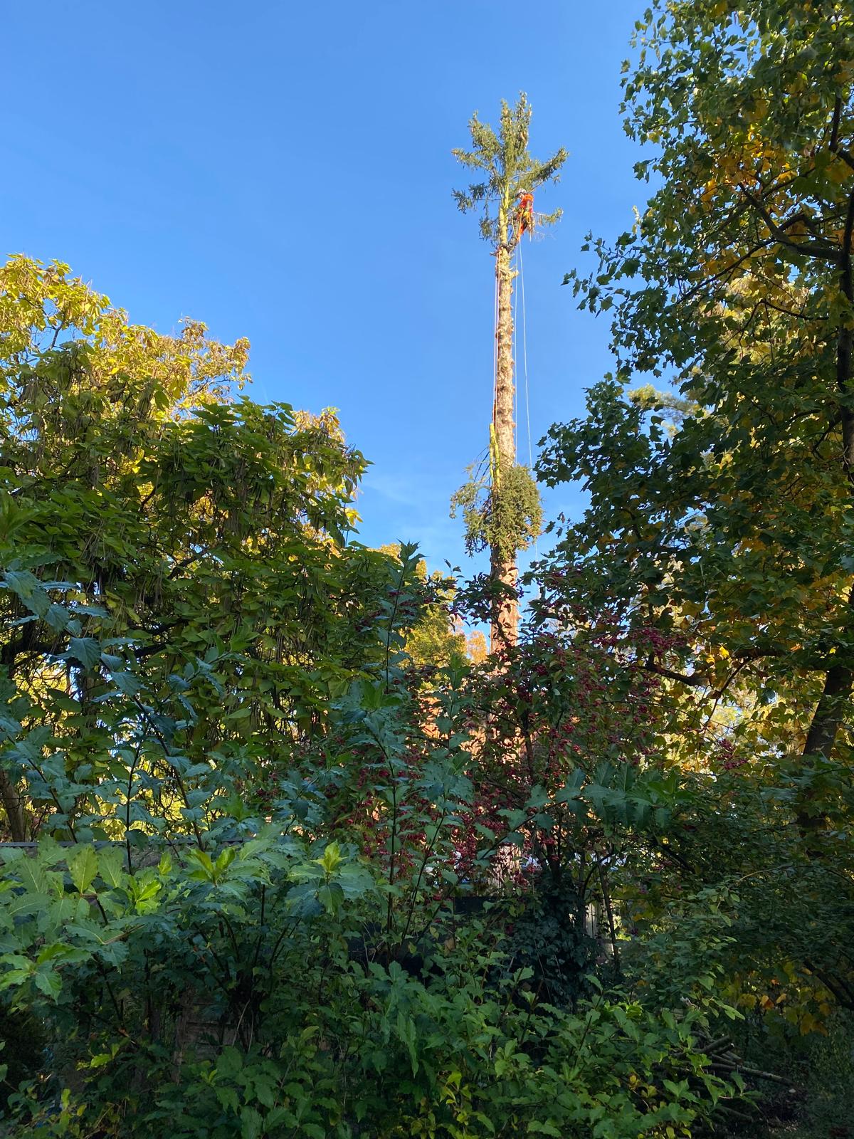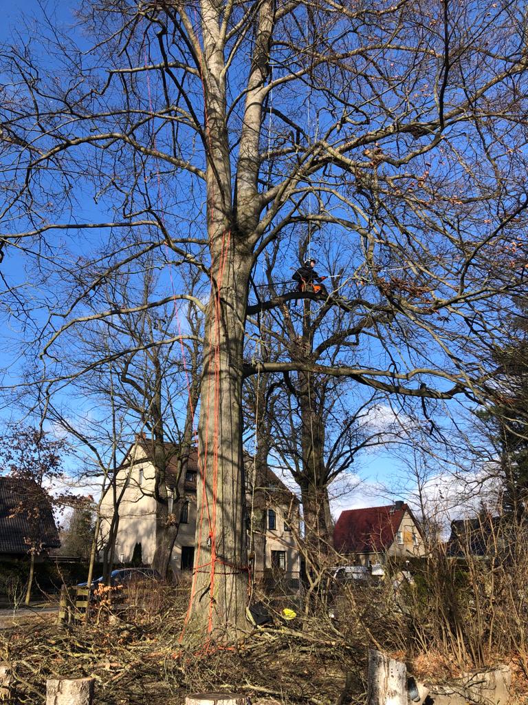 Die Firma Baumdienst Bruchmann hat am abgestimmten Tag, gleich früh bei uns in Berlin Biesdorf die Arbeiten begonnen und war in der vorgesehenen Zeit am Nachmittag mit dem Fällen des Baumes fertig. Die Fällung des gut 14 m hohen Walnussbaums erfolgte per Seilklettertechnik mit Abseilen eines Großteils der Äste, um kleinere Bäume, Haus und Zaun zu schonen. Die zwei Mitarbeiter arbeiteten sich Ast für Ast von unten nach oben, um anschließend dann von oben nach unten den Stamm kein zu schneiden. Zwischendurch wurden die Äste immer wieder auf den Anhänger geladen und klein gesägt. Zum Schluss wurden die kleineren Äste aufgelesen und geharkt. Die Kommunikation verlief jederzeit freundlich und unkompliziert. Der Auftrag wurde schnell und dabei sehr professionell ausgeführt. Bei Firma Baumdienst Bruchmann passte nicht nur die Auftragsausführung sondern auch das Preis-/Leistungsverhältnis. Ich habe sie und werde sie auch weiterhin weiterempfehlen.