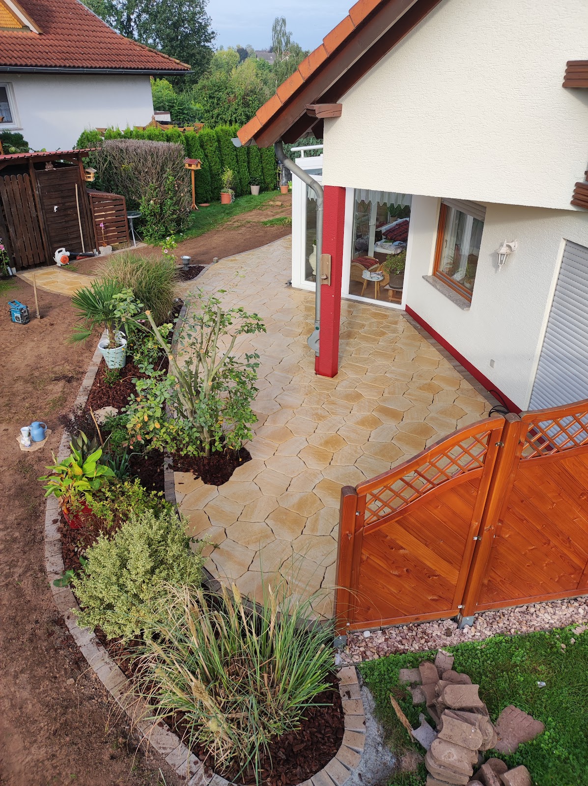 Wir sind Stammkunden bei der Fa. Herrmann, was Gartenpflege angeht. Diesmal war eine Regenabflussrinne zu ersetzen und die zugehörigen Plasterarbeiten zu erledigen. Und wie erwartet, perfekt erledigt !