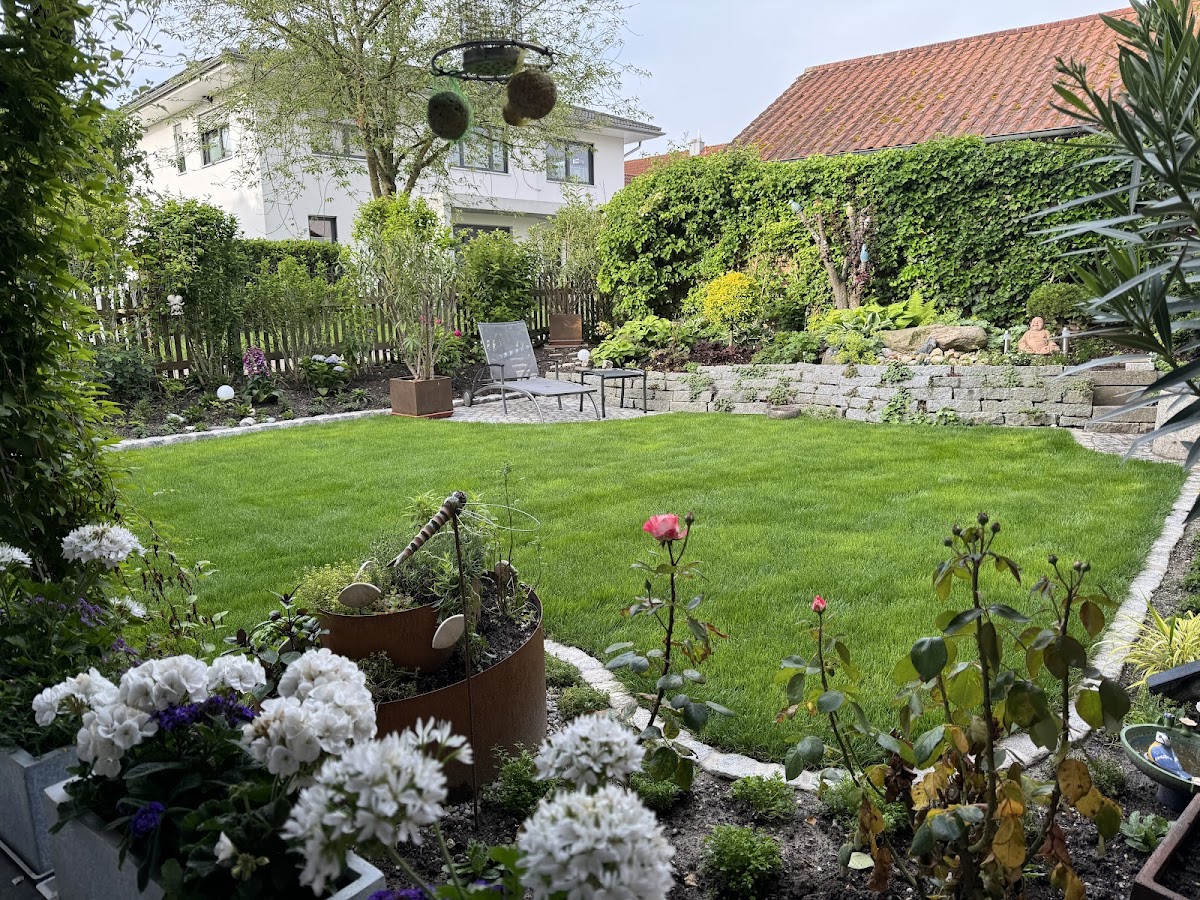 Die Gartenbaufirma Nodes hat bei uns einen Teil der Rasenfläche ausgetauscht, mit Rollrasen belegt, sowie Rasengitter, Mähkanten und Granitplatten gesetzt. Trotz der schwer zugänglichen Stelle hinter unserem Haus und der Barriere durch eine sehr hohe Hecke im Vordergarten gab es keine Probleme, da die Firma über einen großen Kran verfügt, der alle notwendigen Materialien über den Zaun und die Büsche gehievt hat. Die Zusammenarbeit mit Frau Zankl und ihrem kompetenten, freundlichen Team verlief in jeder Phase völlig unkompliziert und für uns stressfrei. Die Planung war durchdacht und der Kostenvoranschlag zügig erstellt, wobei auf die persönliche Beratung großer Wert gelegt wurde. Auch kurzfristige Änderungswünsche wurden ganz selbstverständlich berücksichtigt. Beeindruckt waren wir von der professionellen, schnellen Umsetzung der Arbeiten, die mit großer Sorgfalt ausgeführt wurden. Wir sind mit dem Ergebnis äußerst zufrieden und freuen uns im Nachhinein, genau diese Firma beauftragt zu haben. Wir bedanken uns bei allen Mitarbeitern auf diesem Weg nochmals herzlich und können Gartenbau Nodes uneingeschränkt weiterempfehlen.