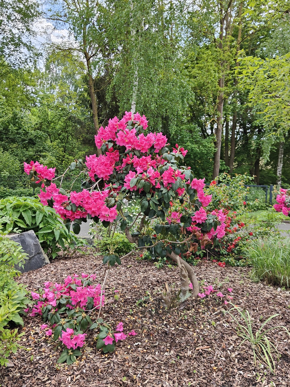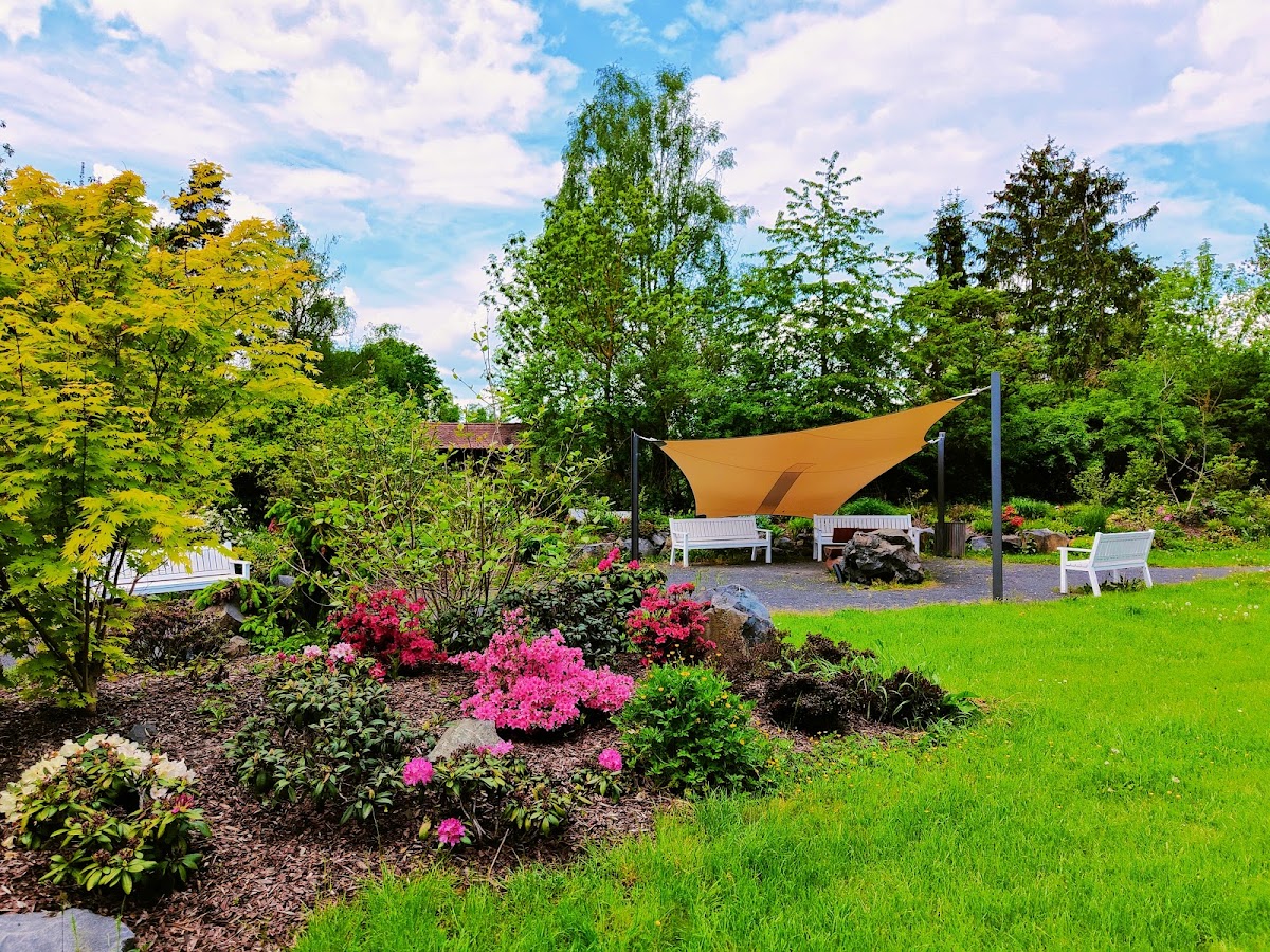 Der Garten ist sehr schön angelegt,einfach eine nette Idee für eine kleine Oase. Leider kommt die Pflege ,bzw das Wassern zu kurz. Der Anblick einiger Rhododendren macht traurig.