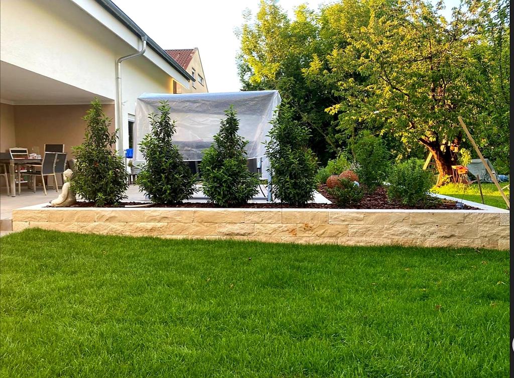 Der Garten wurde komplett neu angelegt mit Rasen, Pflastersteinen, Heckenbepflanzung, Altbestand entfernt- zu unserer vollsten Zufriedenheit ausgeführt, vor allem pünktlich, zuverlässig, schnell und sehr professionell- daher immer wieder gerne und 5 Sterne. Danke!