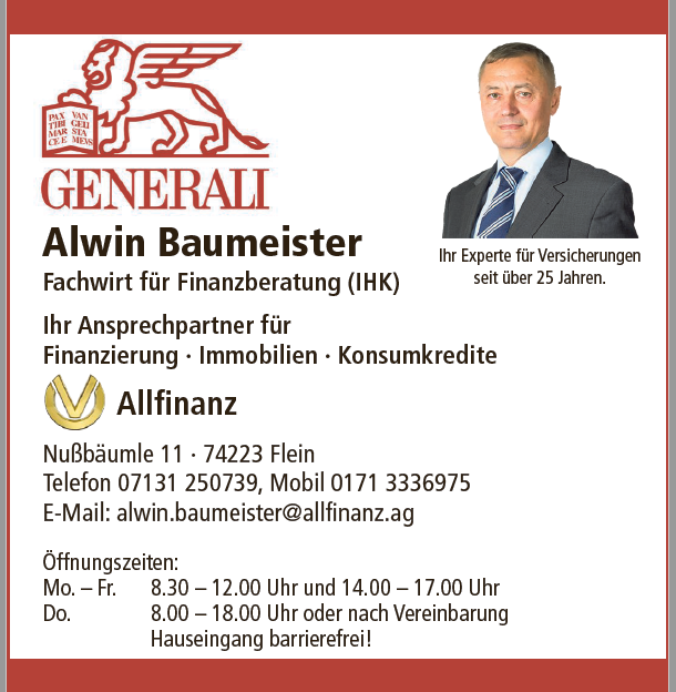 Wir haben seit 10 Jahren zwei Autos bei Herr Baumeister versichert und werden dort sehr gut betreut und beraten. In den Themen Versicherungen und Finanzen ist Herr Baumeister immer ein guter Ansprechpartner für uns.