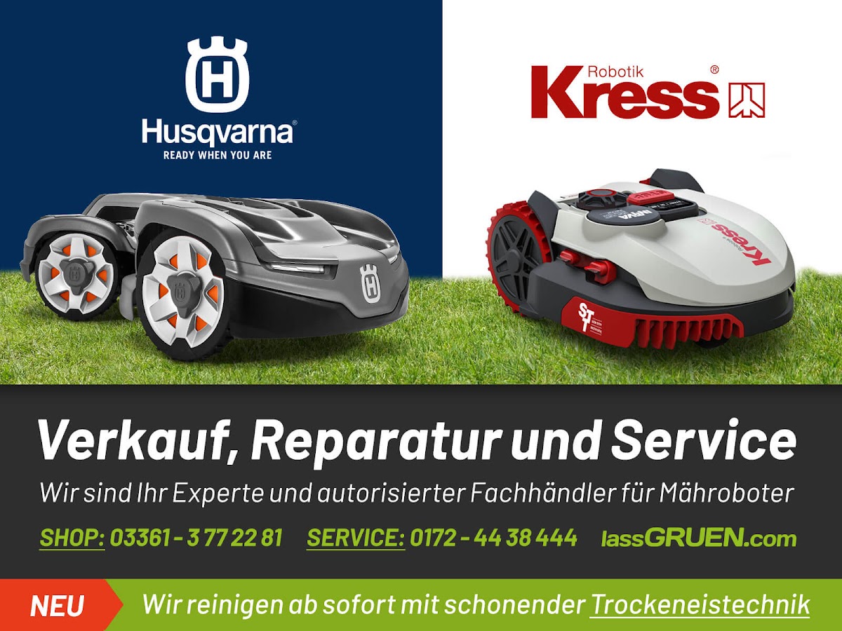 Bin auf Arbeit sehr eingespannt und habe schon seit Längerem eine kompetente Firma für einen Mähroboter gesucht. Bin dabei nach einiger Recherche auf die Firma Lassgruen gestoßen und habe einen Termin zur Beratung vereinbart. Die Beratung einfach nur TOP! Sehr kompetente Beratung perfekt auf meine Bedürfnisse zugeschnitten. Als Platin Kunde wird mein Roboter im Herbst abholt und mit Trockeneis gereinigt. Pünktlich zur Saison ist er wieder da, gründlich gewartet und voll einsatzbereit. Super Rasendünger gab es auch noch. Traumrasen! TOP!!! Nur empfehlenswert!!!!