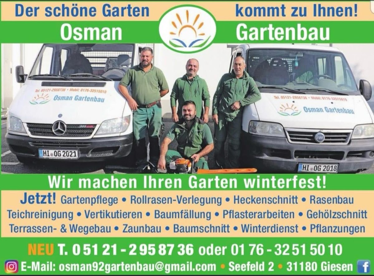 Firma Osman hat bei mir meine Kirschlorberhecke geschnitten. Ich bin sehr zufrieden mit der Arbeit. Firma Osman war pünktlich vor Ort und haben schnell und sauber gearbeitet. Ich empfehle Herrn Osman mit seinen Leuten vorbehaltlos weiter.
