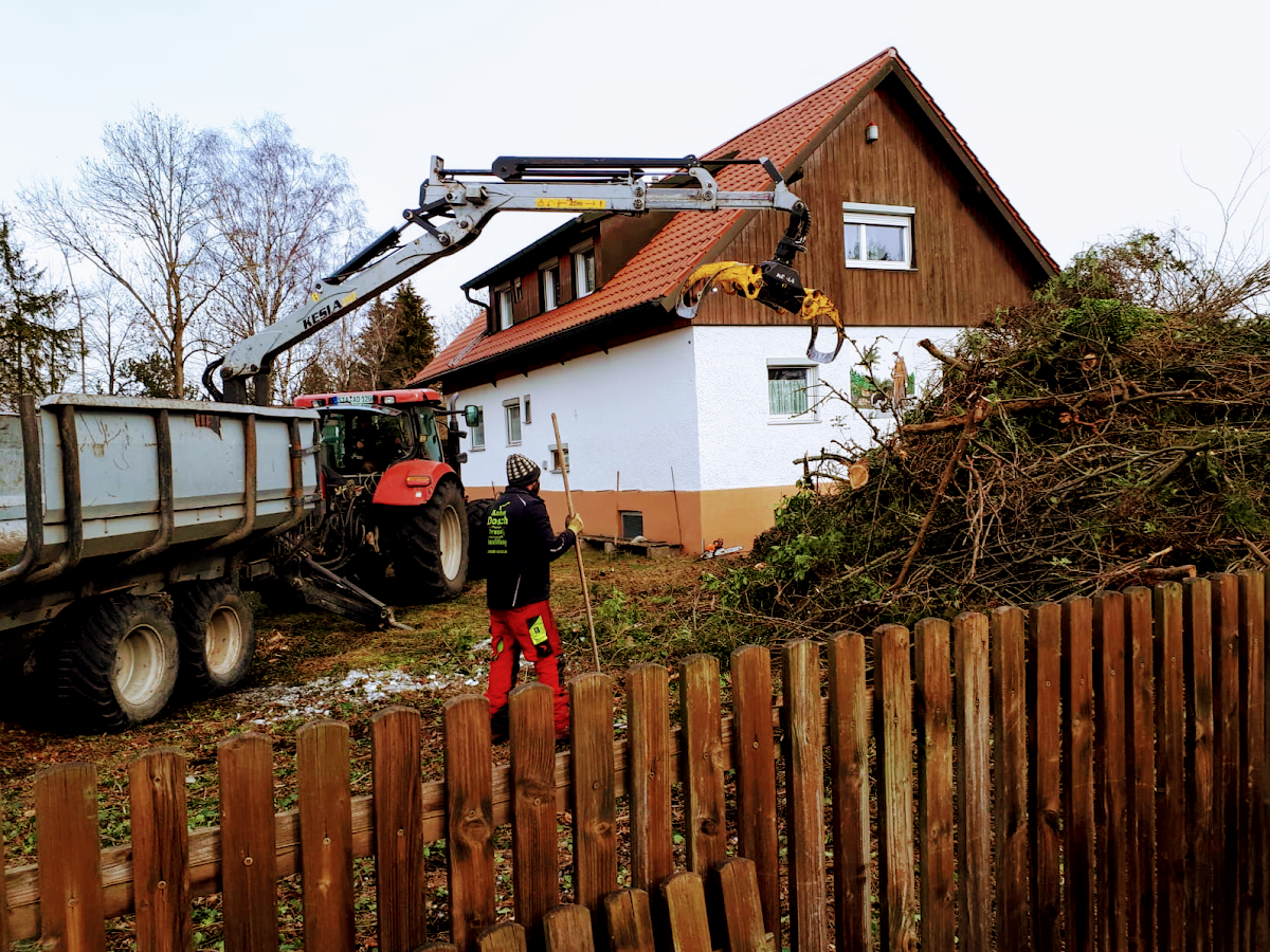 Unsere alte Birke trieb dieses Jahr leider nicht mehr aus und musste, da sie am Straßenrand stand, schnellstmöglich gefällt werden. Da uns die Firma Dosch immer mit gutem Brennholz versorgt, war es naheliegend sie mit der Baumfällung zu beauftragen. Sie halfen uns sehr kurzfristig und unkompliziert. Der Baum war trotz Regen und Schneefall innerhalb von ein paar Stunden gefällt, alles wurde saubergemacht und die angrenzenden Bäume und Sträucher wurden nicht geschädigt. Vielen herzlichen Dank!