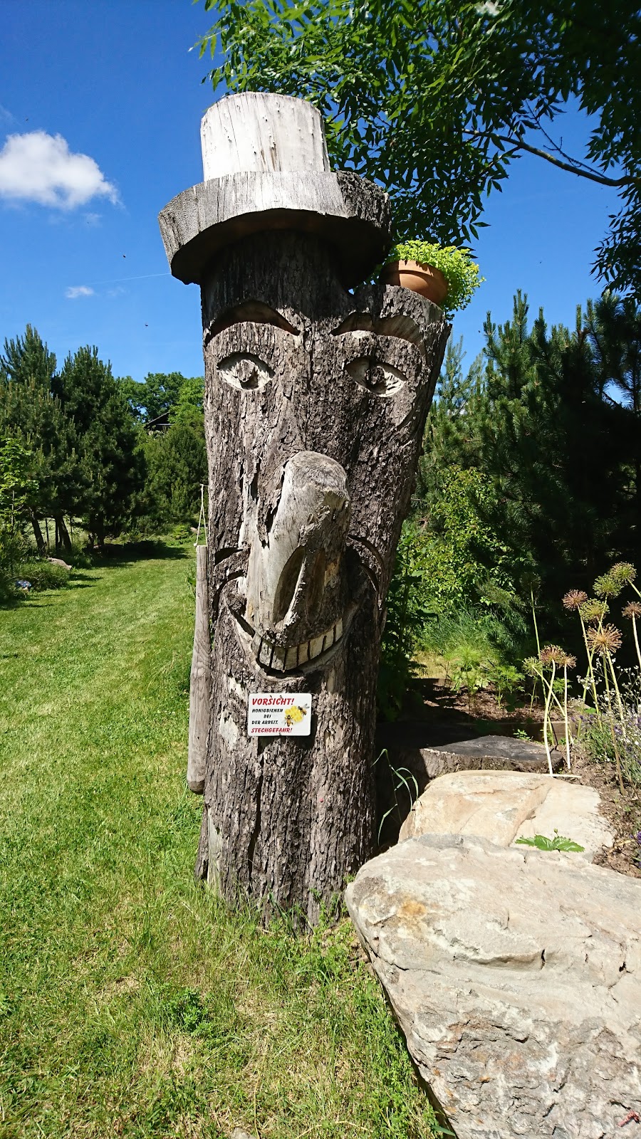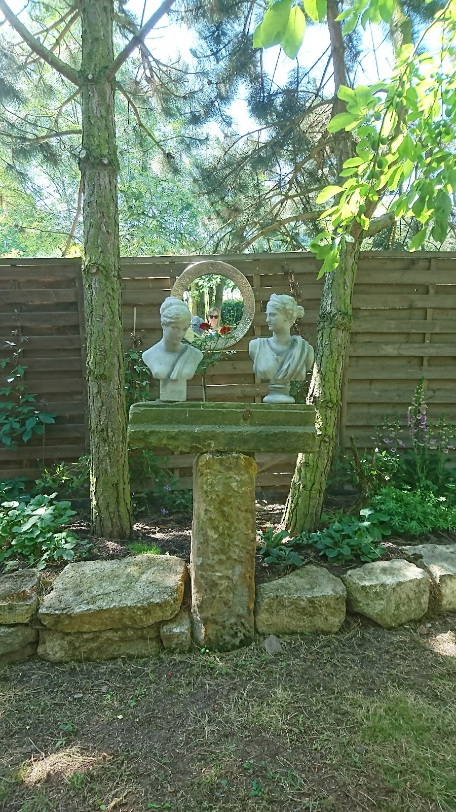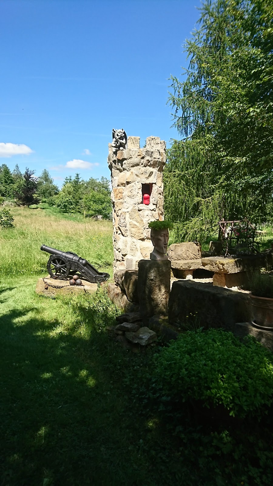 Zum Tag der offenen Gärten konnten wir den Garten bestaunen. Das ist ja ein Kunstwerk mit ganz vielen Keramiken und in Stein gehauene Figuren. Sehr schön, das kann man beim ersten Mal gar nicht alles erfassen.