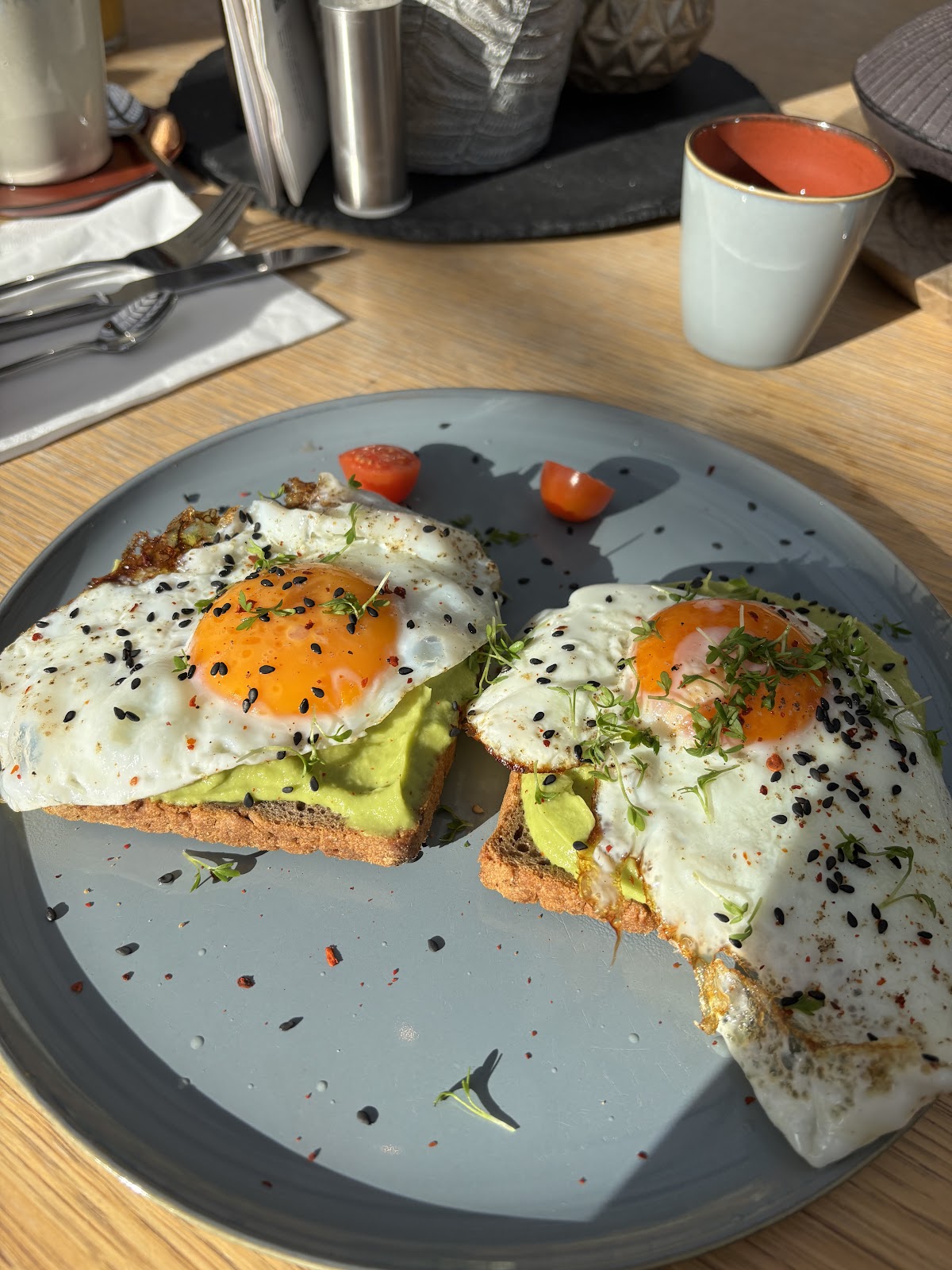 Tolles Café! Das Essen war frisch zubereitet und hat sehr gut geschmeckt. Wir wurden auch immer darauf hingewiesen, wenn etwas länger dauert (weil es noch frisch aufgebacken werden muss) und haben uns rundum wohl gefühlt. Der Service war auch sehr aufmerksam und hilfsbereit! Mir persönlich war es in der Sonne und neben dem Heizstrahler zu warm, aber das mag jeder anders :-)