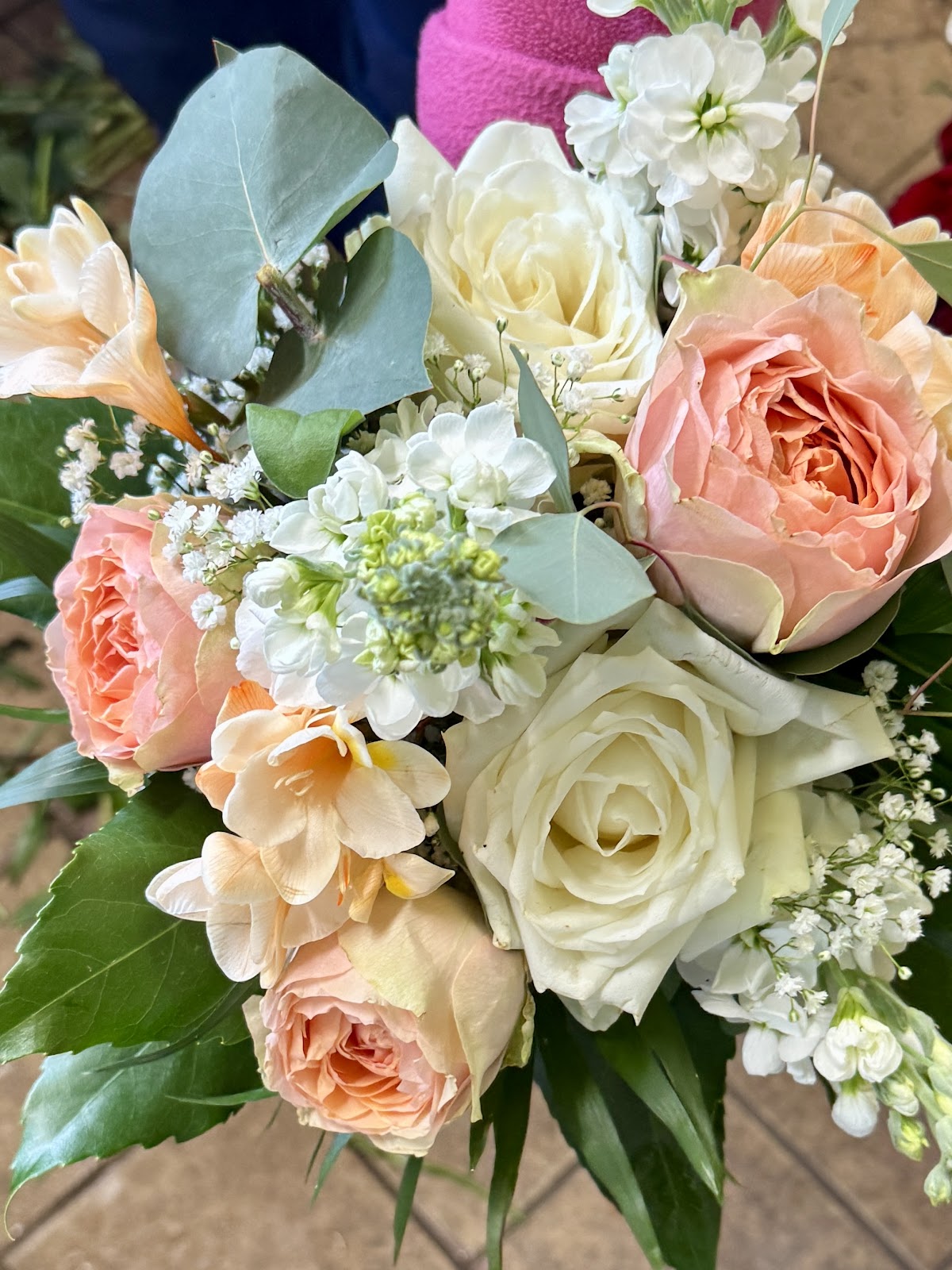 Es waren keine Sträuße zur Auswahl fertig. Dann muss man sich auf den Geschmack der Binderin verlassen.
