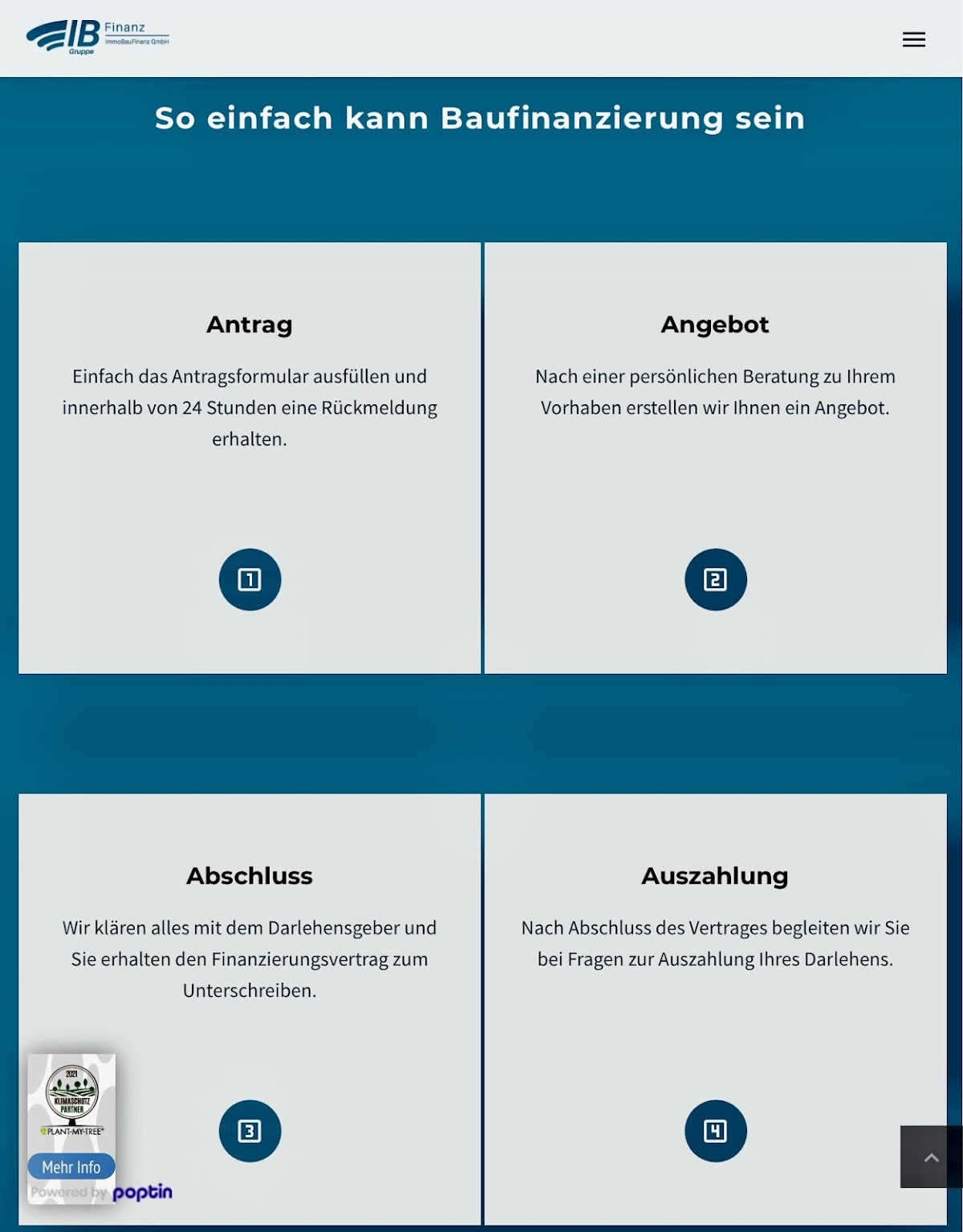 Zu empfehlen. Ich war zuvor bei einem anderen Berater und wurde enttäuscht und alleine gelassen. Danach bin ich auf die IBFinanz gestoßen. Ich wurde direkt professionell beraten und hatte einen Ansprechpartner, der gefühlt rund um die Uhr erreichbar war und sich sofort für mich ins Zeug gelegt hat. Es werden einem mehrere Möglichkeiten aufgezeigt und das beste versucht die Wünsche zu erfüllen. Man fühlt sich gut aufgehoben. Ich würde immer wieder zur IBFinanz gehen. Klare Empfehlung