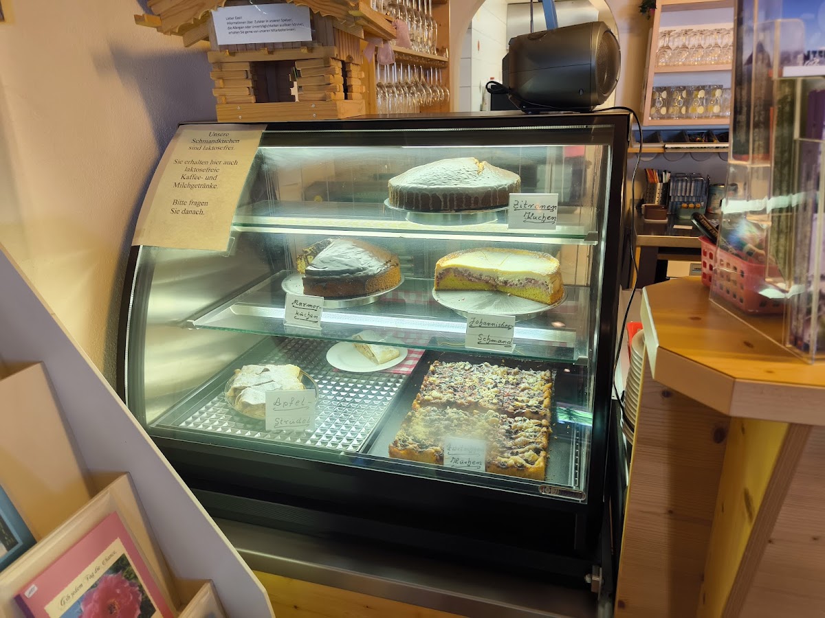 Sehr, sehr nettes Café mit tollem Garten und auch Plätzen innen. Wahnsinnig tolle Auswahl von hausgemachten Kuchen und kleinen Snacks, wie Currywurst, Gulaschsuppe und ähnliches. Das Personal ist äußerst freundlich. Apfelstrudel und Zwetschenstreusel waren richtig lecker. Das Café ist absolut zu empfehlen