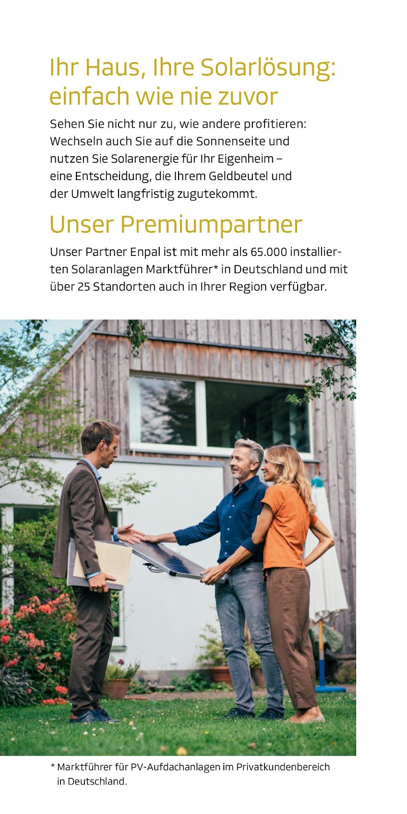 Herr Lindner hat mir im September eine Photovoltaikanlage von Enpal empfohlen. Sehr schnell bekam ich von ihm ein erstes Angebot dazu unterbreitet. Im Angebot stand u.a., dass die Photovoltaikanlage nach Vertragsabschluss innerhalb von 4 Wochen gebaut werden kann. Letztendlich dauerte es nicht einmal 3 Wochen. Ich kann Herrn Lindner jederzeit empfehlen. Er ist kompetent, zuverlässig und jederzeit ansprechbar.