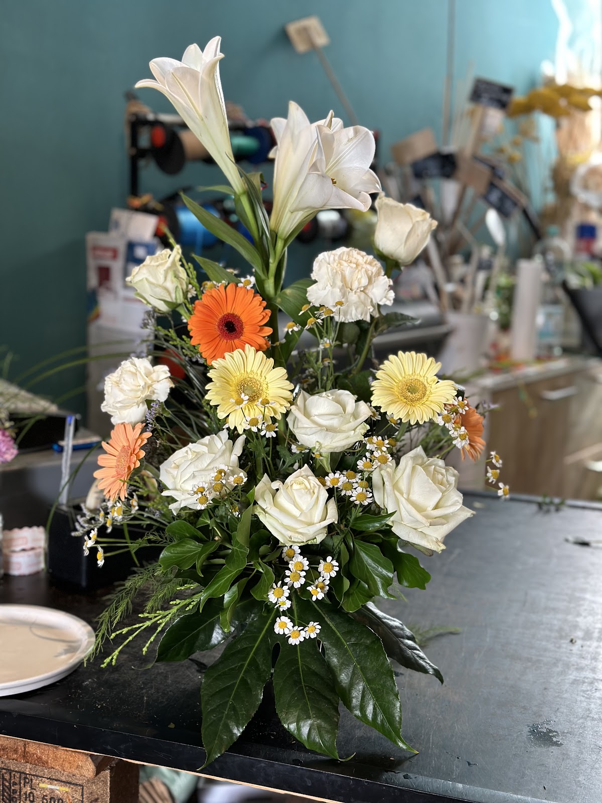 Ein junger Mann war dort, konnte die Kasse nicht bedienen, keine Quittung ausschreiben, keinen Kassenbon drucken. Er wollte dann telefonisch sich in die Kassenbedienung einweisen lassen - ich habe dann auf die Quittung verzichten müssen, obwohl es ein Geschäftsstrauß war, der eine Quittung benötigt hätte. Ahnung vom Binden hatte er auch nicht, und frisch waren die Blumen auch nicht, viel zu weit aufgeblüht. Übrigens bindet man Blumen mit Blättern außen rum, damit der Strauß nicht aussieht wie von Kinderhand gemacht. Insgesamt ein Katastrophe - ich würde sagen - Leute lasst es, so geht ein Geschäft nicht.