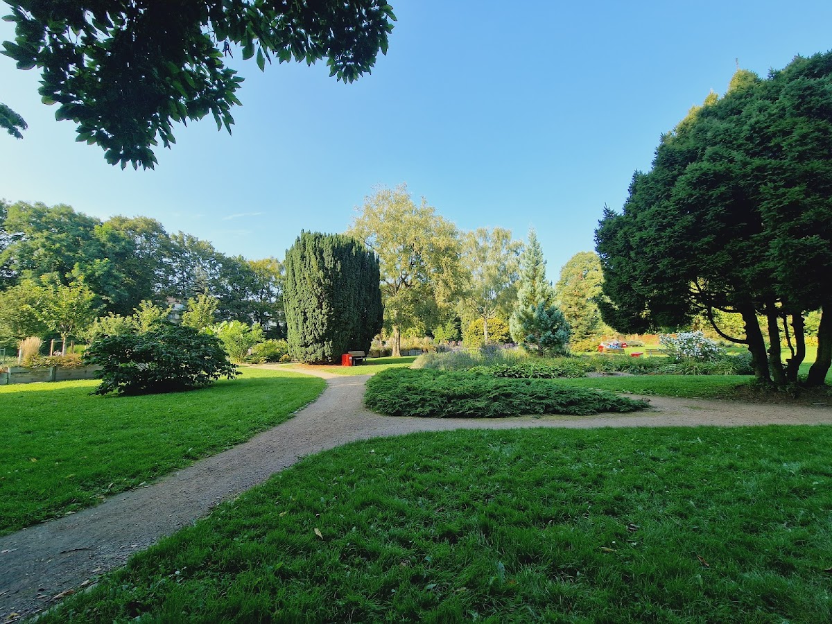 Sehr schön angelegter, ruhiger kleiner Park mit sehr interessanten Gewächsen. Tolle alte Bäume 🌳 und sogar Palmen 🌴 . Überall gibt es Bänke und Sitzgelegenheiten.