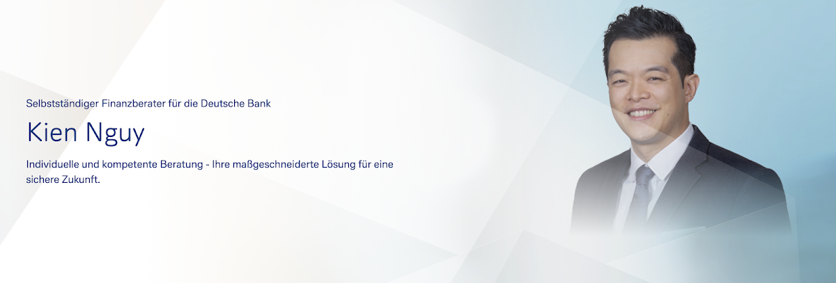 Kien Nguy ist seit Kurzem - nachdem der letzte über 10 Jahre für mich da war - mein neuer Ansprechpartner bei der Deutschen Bank für die Themen Versicherung, Vorsorge und Anlage.