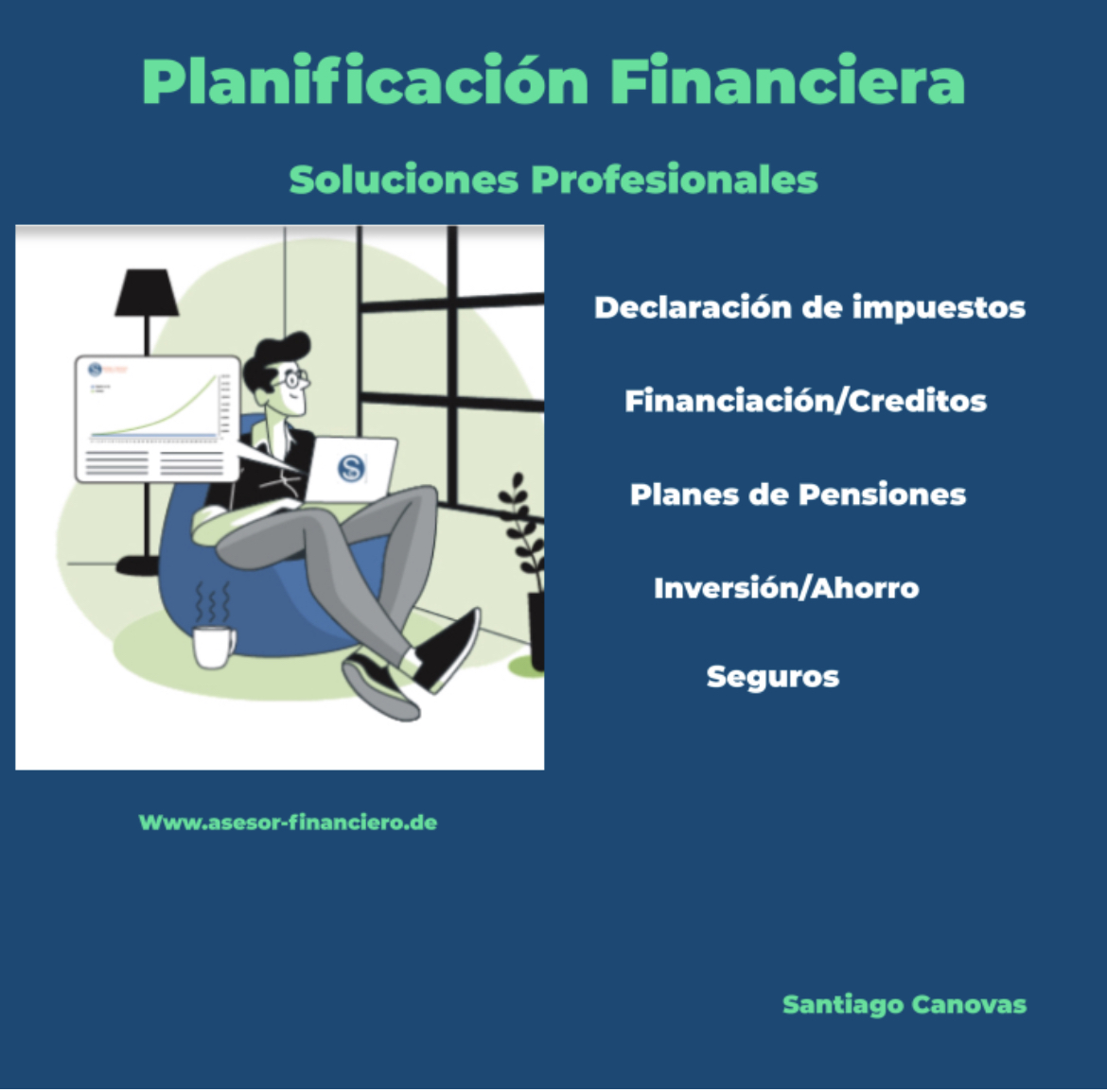 Santiago es realmente un profesional. Lo puedo recomendar al 100%. Santiago sabe perfectamente cómo dirigirse a lo que el cliente quiere y necesita de la forma más precisa posible, e igualmente el cuidado por su cliente es impecable. Herr Cánovas ist wirklich ein Profi. Ich kann ihn zu 100 % empfehlen. Er versteht es perfekt, auf die Wünsche und Bedürfnisse seiner Kunden so präzise wie möglich einzugehen. Zudem betreut er seine Kunden auf eine außergewöhnlich herzliche und freundliche Weise.