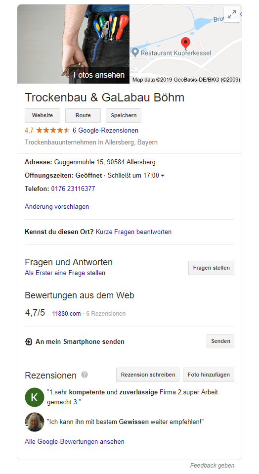 Herr Böhm hat äußerst zuverlässige und gute Arbeit zu einem angemessenen Preis geleistet. Auch die Kommunikation mit ihm lief reibungslos. Sehr netter und professioneller Handwerker. Wenn es bei uns wieder was zu tun gibt, würden wir uns wieder an ihn wenden. Kann ihn nur empfehlen!