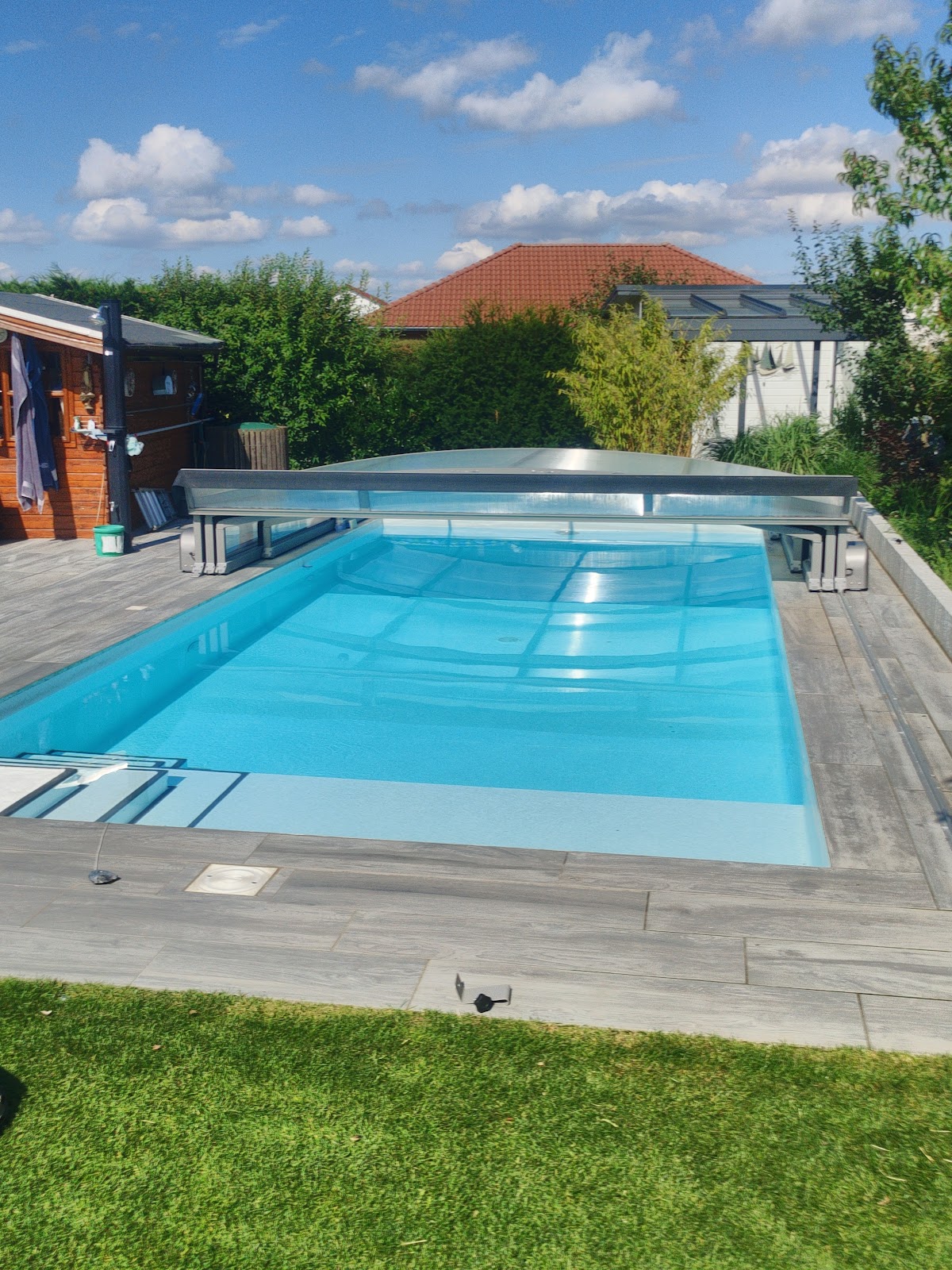 Was lange währt, wird endlich gut. Und „endlich“ ist hier nicht als ein Reizwort zu verstehen, sondern dafür, dass Geduld und Ausdauer zu positiven Ergebnissen führen. Wir hatten die Idee, uns einen Pool, in dem man auch schwimmen kann, in den Garten bauen zu lassen. So weit die blauäugige Vorstellung, dass das ja nicht so ein Problem sein wird. Aber da ging es schon los: In unserer Region war es sehr schwierig eine Firma zu finden, die das realisiert und noch zusätzlich Gartengestaltungen mit umsetzt. So führten wir das erste Gespräch mit der Firma „Galabau Hübner“ aus Hohenzieritz im Februar 2021. Und ab hier brauchten wir viel Geduld und Hoffnung, denn an Aufträgen aller Art mangelte es der Firma nicht, dafür aber an Arbeitskräften. Auch zwischenzeitliche Probleme hinderten nicht an der Fertigstellung. So wollte z. B. der Rasenroboter nicht wirklich das tun, was er sollte. Aber auch in diesem speziellen Fall konnten Hr. und Fr. Hübner die Funktionsfähigkeit herstellen. Umso höher müssen wir die erbrachten Leistungen aller einschätzen. Kurz und gut, Anfang Mai 2023 ging es endlich los. Herr Hübner und seine beiden Angestellten arbeiteten fleißig, gewissenhaft und immer wieder mit guten Ideen, was noch Sinnvolles mitgemacht werden könnte. Trotz aller Wetterkapriolen und weiterer mit zu erledigenden Aufträgen war es dann im Herbst geschafft. Der Sommersaison 2024 stand nun nichts mehr im Wege. Und in dieser sind wir jetzt mittendrin und haben nichts zu bereuen. Es ist natürlich ein gewisser Luxus der nun hier entstanden ist, aber wir möchten diesen auch nicht mehr missen. Aber ebenso die Anlagen um Pool und Terrasse herum (Umrandung, Rollrasen, Mäh- und Bewässerungstechnik) sind zu unserer vollsten Zufriedenheit angelegt worden. Wir hoffen, dass die Fotos diese kurze Beschreibung bestätigen. An dieser Stelle nochmals vielen Dank und auf weitere gute Zusammenarbeit. Wir hätten da ja noch was in der Planung. Und Geduld und Ausdauer ist bei uns auch weiterhin vorhanden. Wer immer das liest und Fragen zu diesem Projekt haben sollte, kann gerne über die Firma Hübner unsere Kontaktdaten erhalten. Fazit: Eine eindeutige Empfehlung unsererseits.