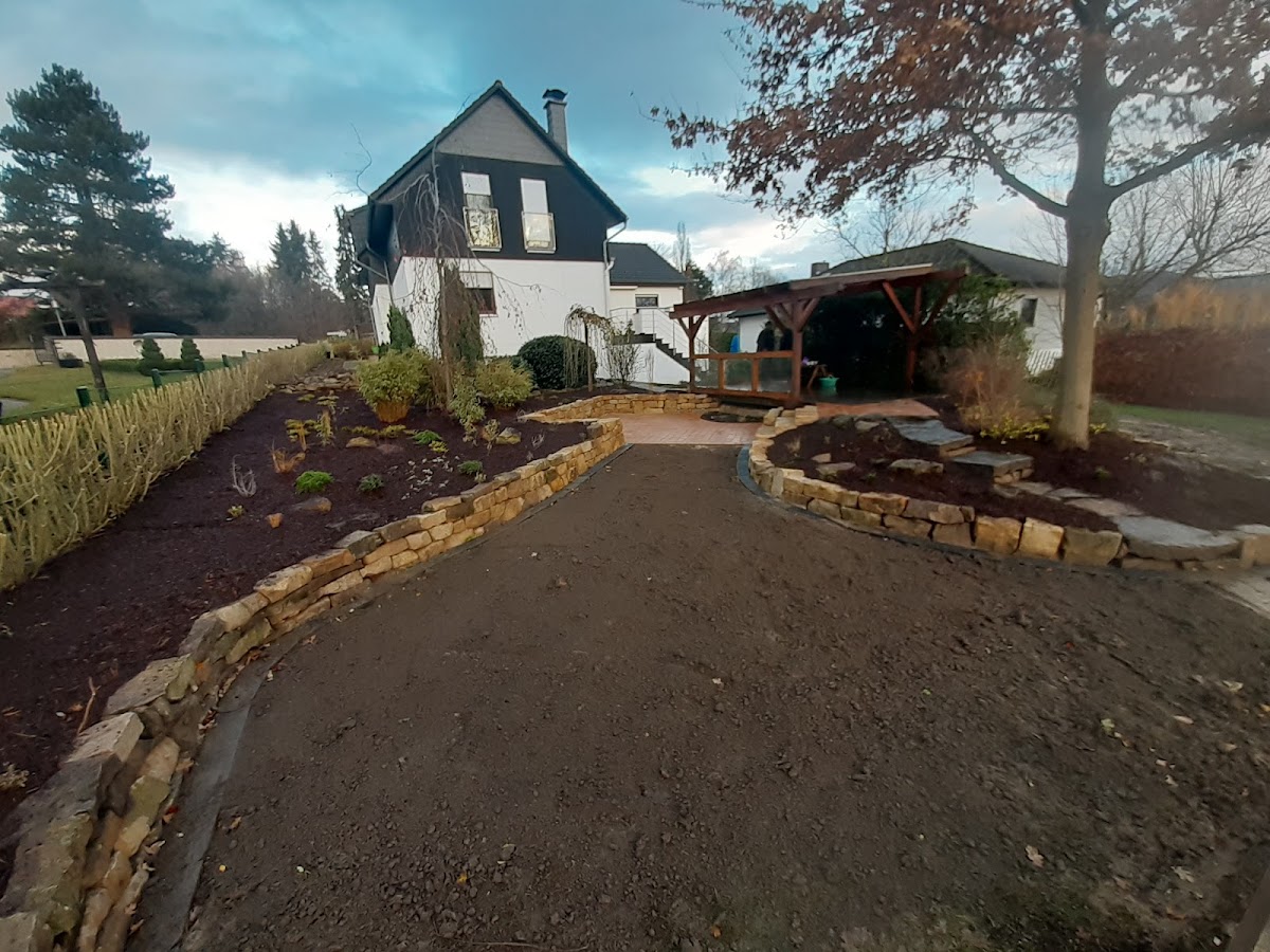 Ich muss hier mal ein großes Lob aussprechen an die Firma Meier Gartengestaltung, die unsere alte Pflanzkübelmauer abgerissen, entsorgt und durch eine neue Sandsteinmauer ersetzt hat. Schon beim Vorgespräch wurden alle Fragen professionell beantwortet, auf Besonderheiten hingewiesen und unsere Wünsche mit eingebunden. Das Bauvorhaben verlief ohne Komplikationen und so wie vorher vereinbart (auch terminlich) ab. So soll es doch sein... Vielen Dank Frau und Herr Meier (und natürlich auch an Ihre Helfer) für Ihre unkomplizierte und freundliche Art- und Weise, sowie Ihre professionell und sauber ausgeführte Arbeit. Ihr Angebot hat letztendlich nicht nur preislich überzeugt... Für meine zukünftigen Bauvorhaben werde ich auf jeden Fall die Fa.Meier Gartengestaltung mit ins Boot holen. Danke